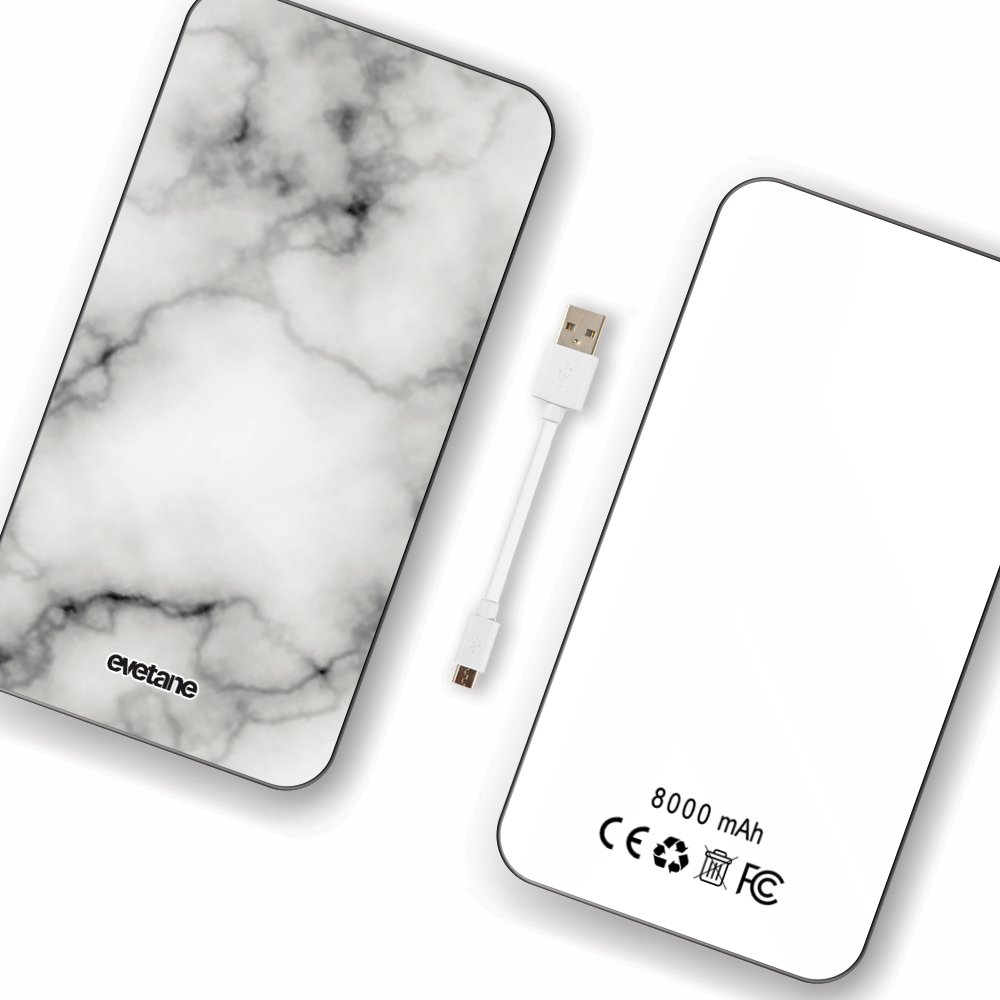Batterie Batterie verre trempé 8000mAh Marbre blanc Motif Ecriture Tendance Evetane