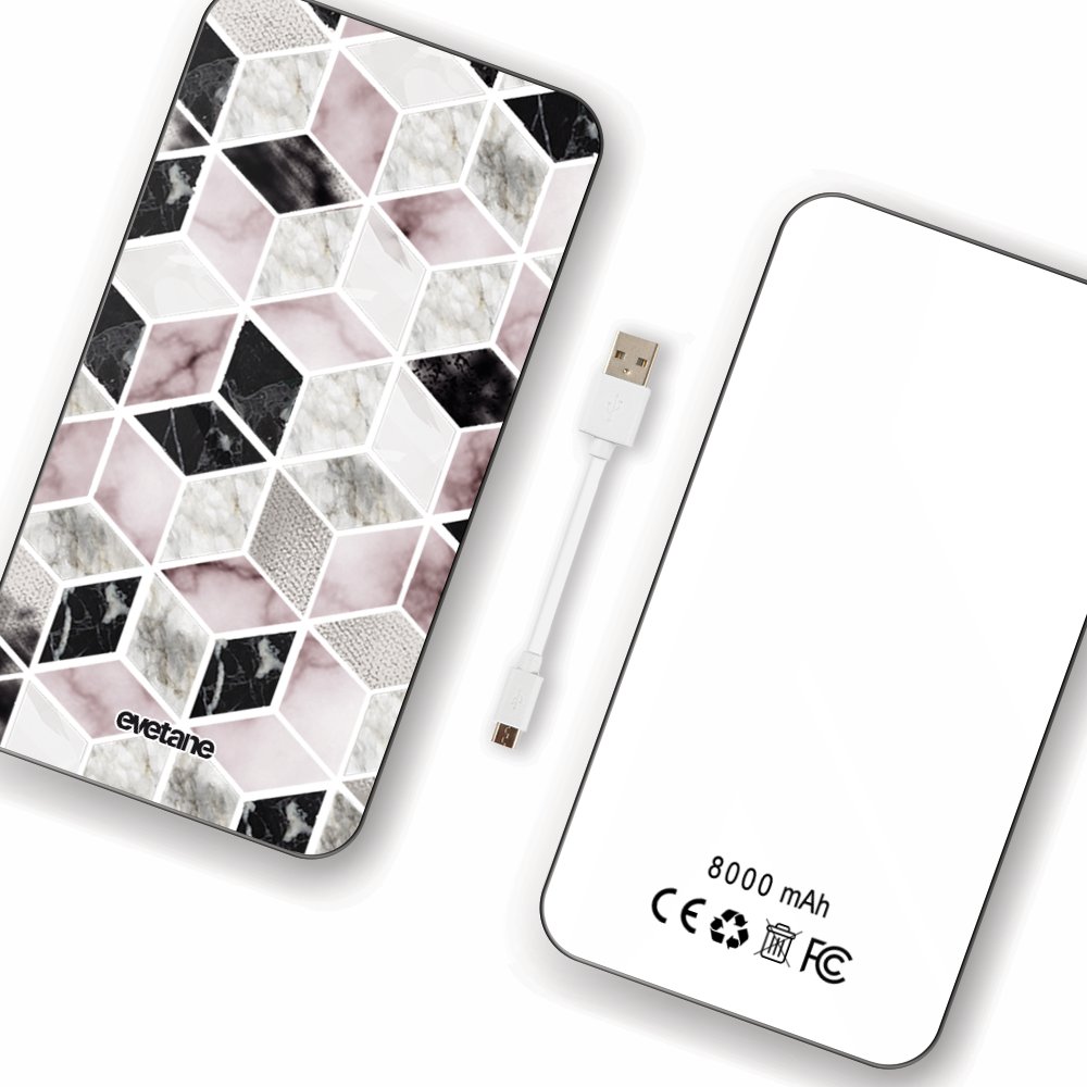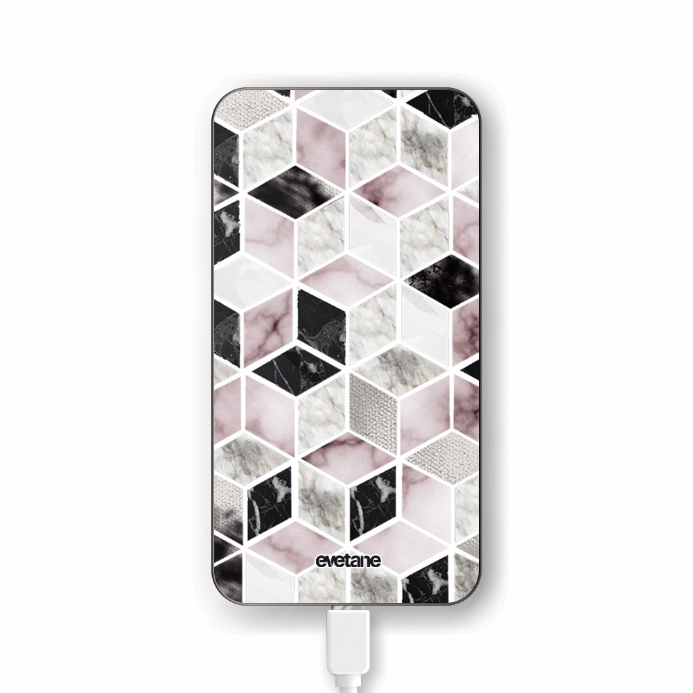 Batterie verre trempé 8000mAh Cubes Géométriques Motif Ecriture Tendance Evetane