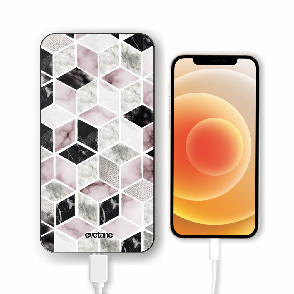 • Batterie verre trempé 8000mAh Cubes Géométriques Motif Ecriture Tendance Evetane