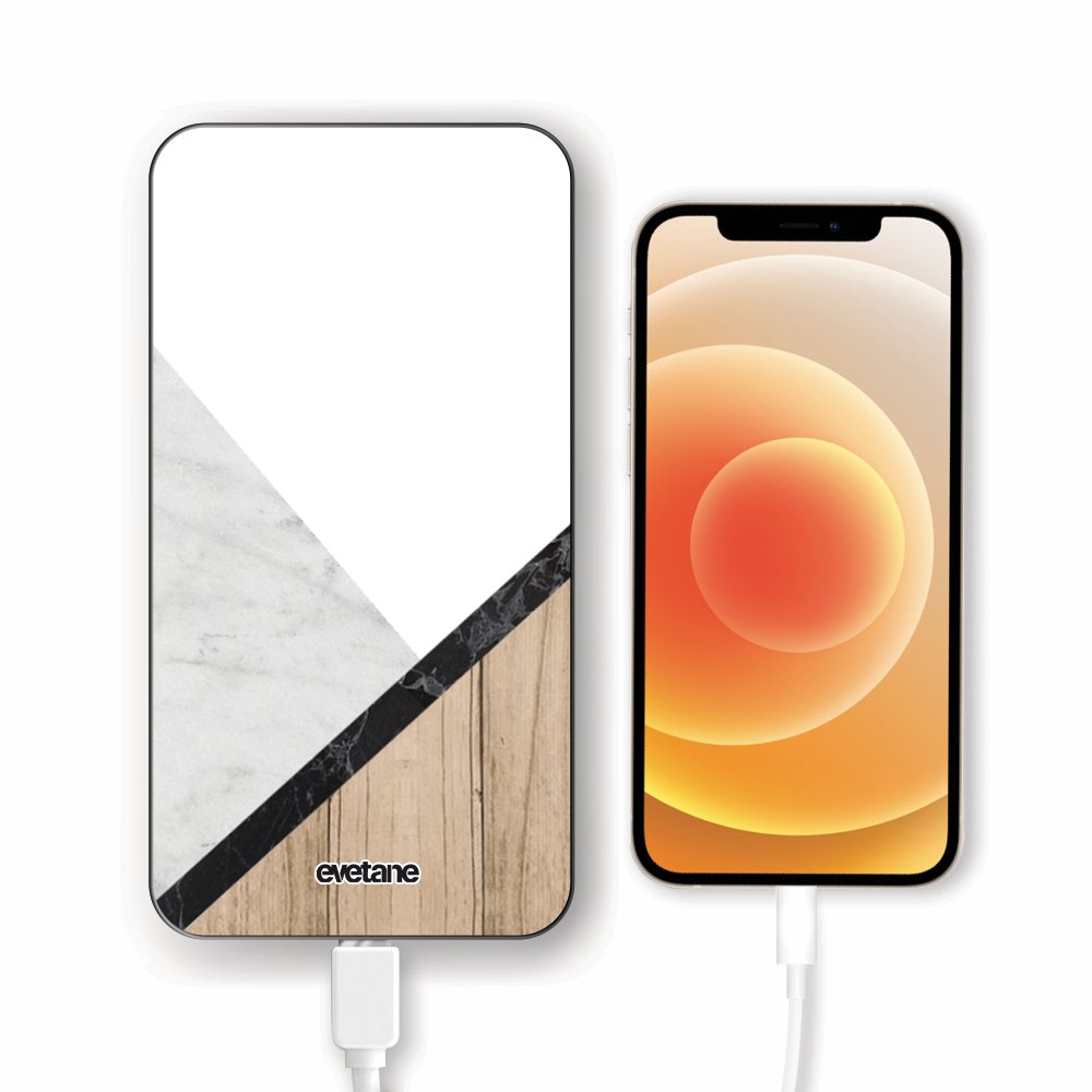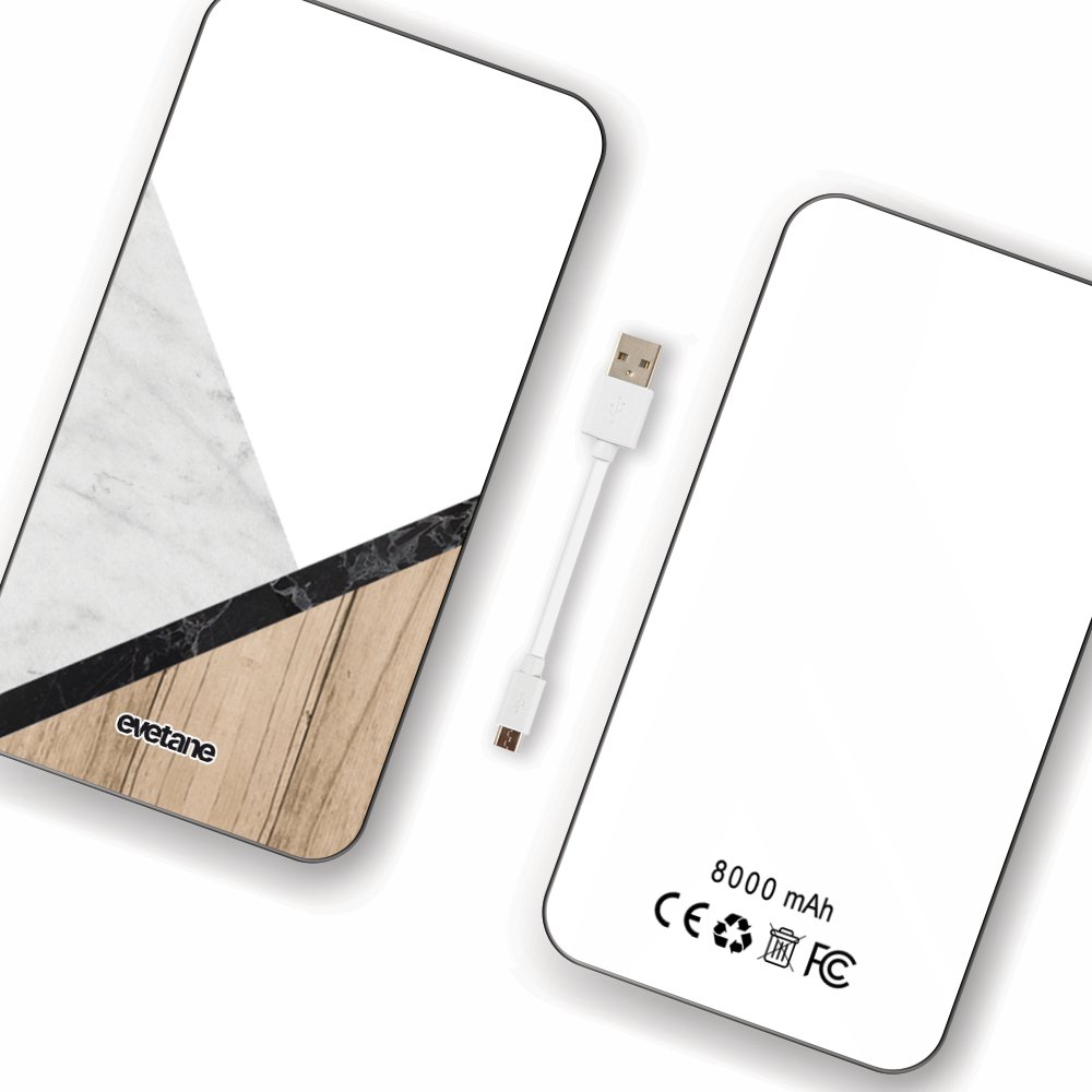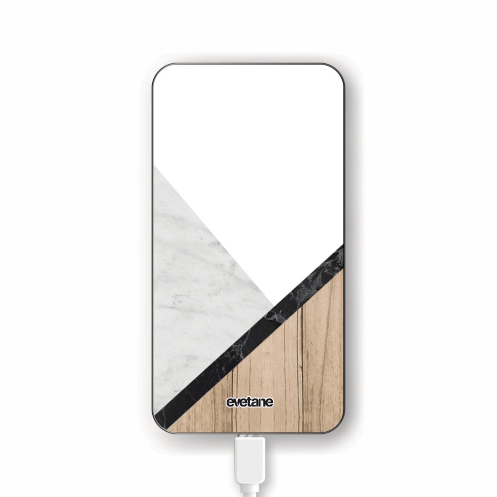 Batterie Batterie verre trempé 8000mAh Marbre et Bois Graphique Motif Ecriture Tendance Evetane