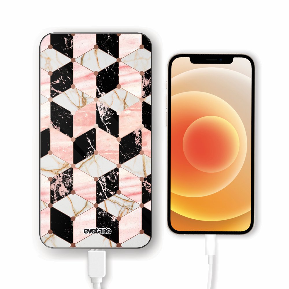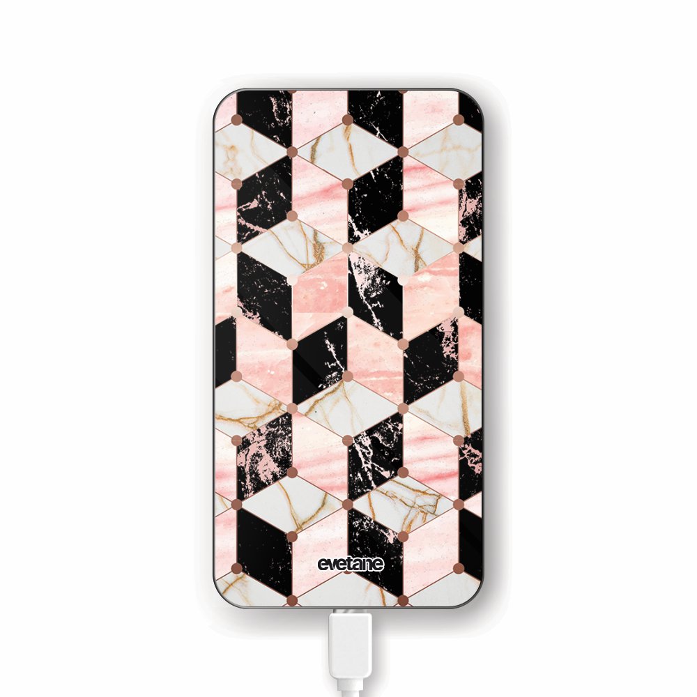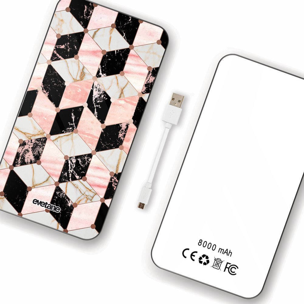 Batterie Batterie verre trempé 8000mAh Cubes Marbres Motif Ecriture Tendance Evetane