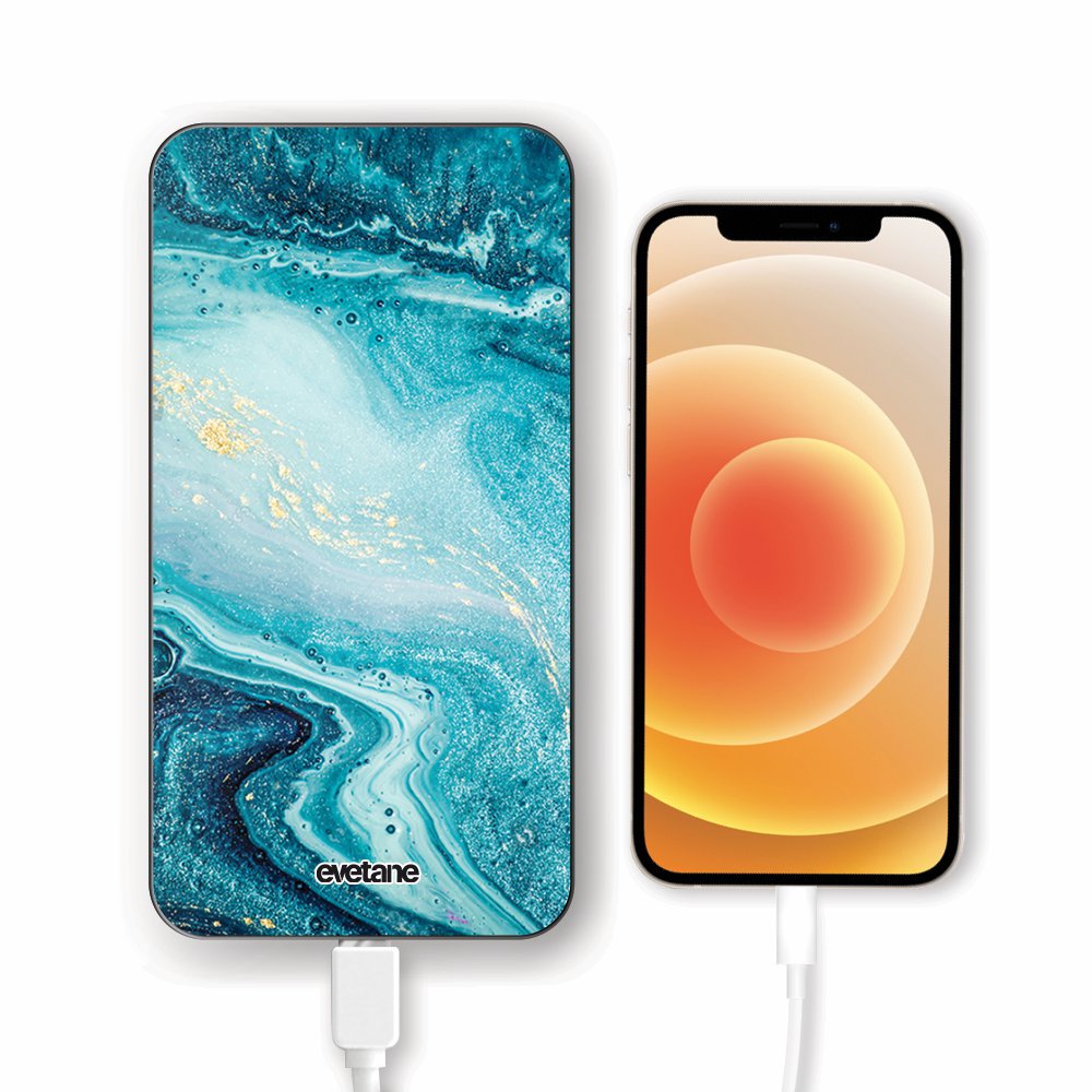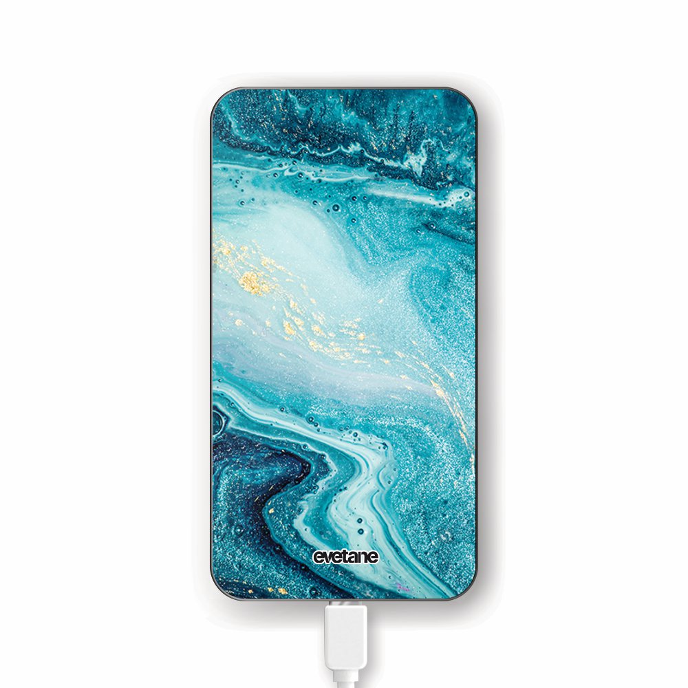 Batterie Batterie verre trempé 8000mAh Bleu Nacré Marbre Motif Ecriture Tendance Evetane