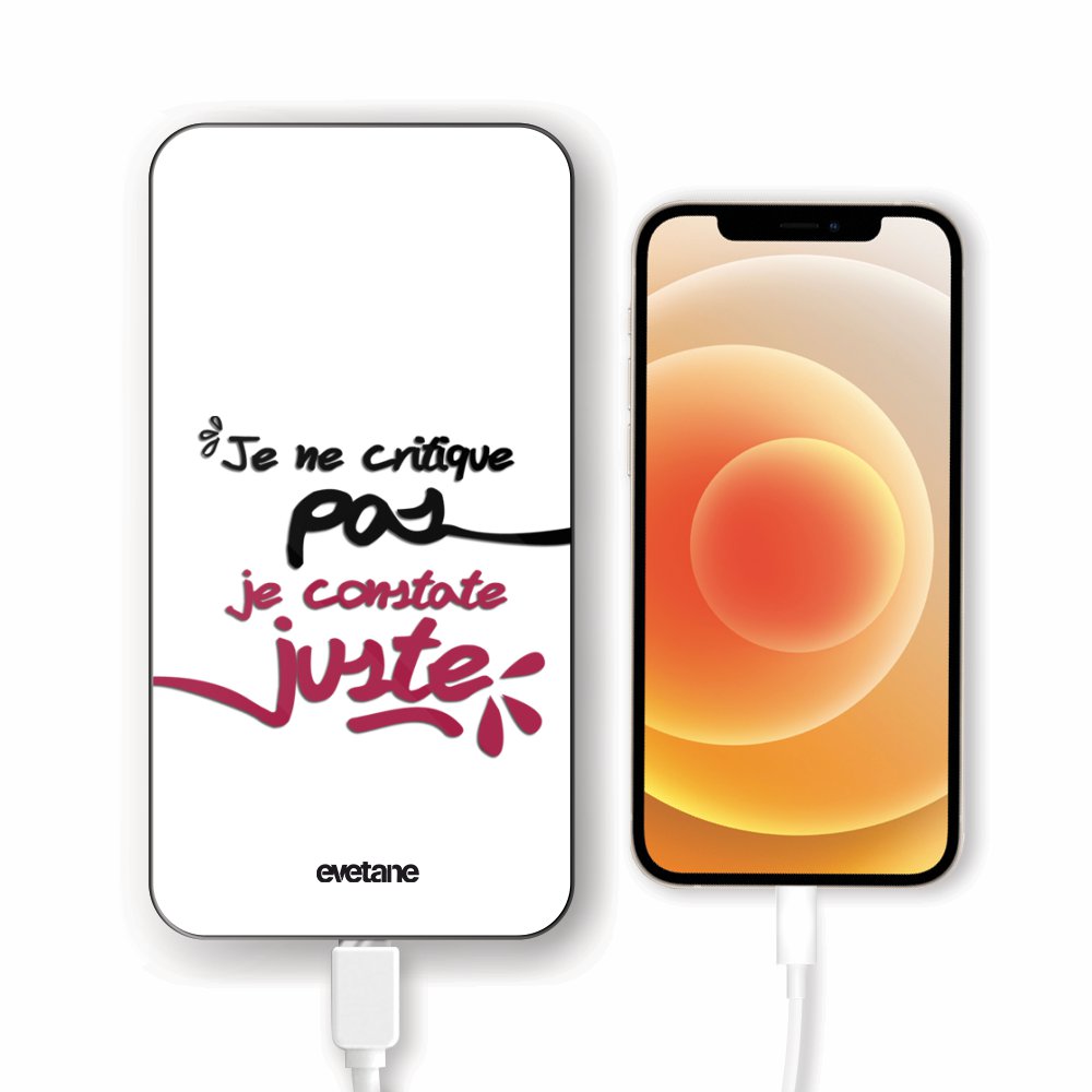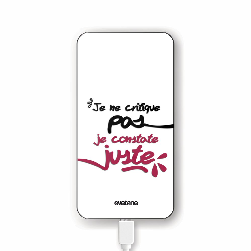 Batterie verre trempé 8000mAh Je Constate Juste Motif Ecriture Tendance Evetane