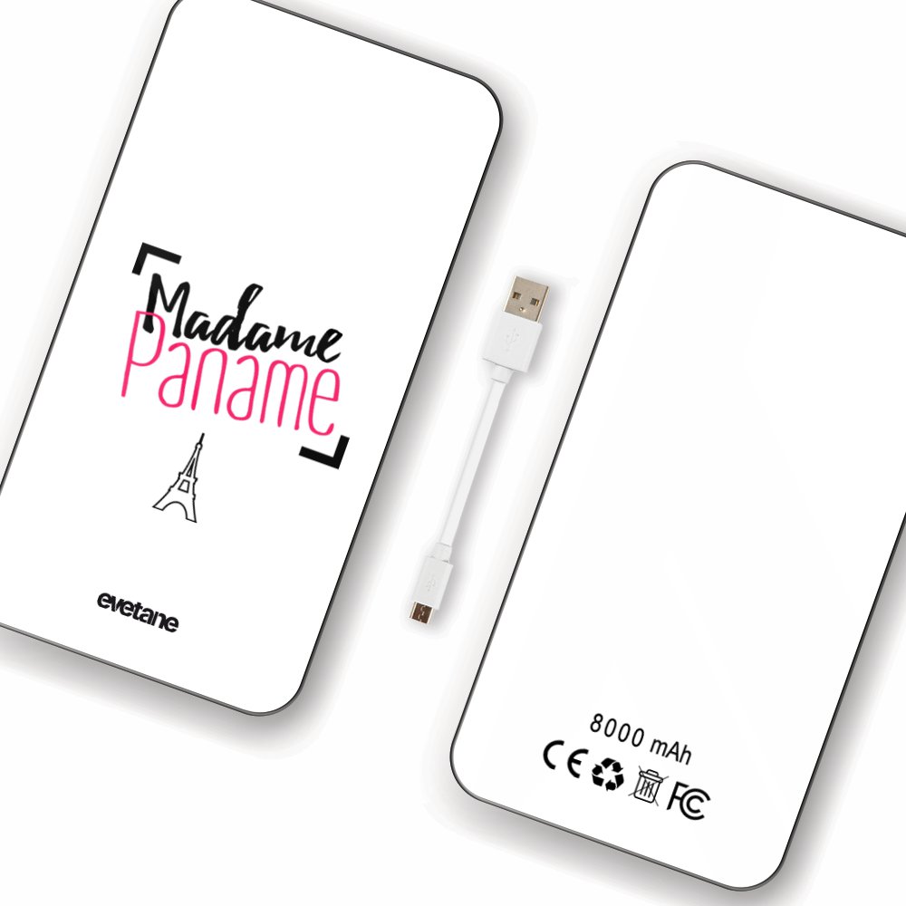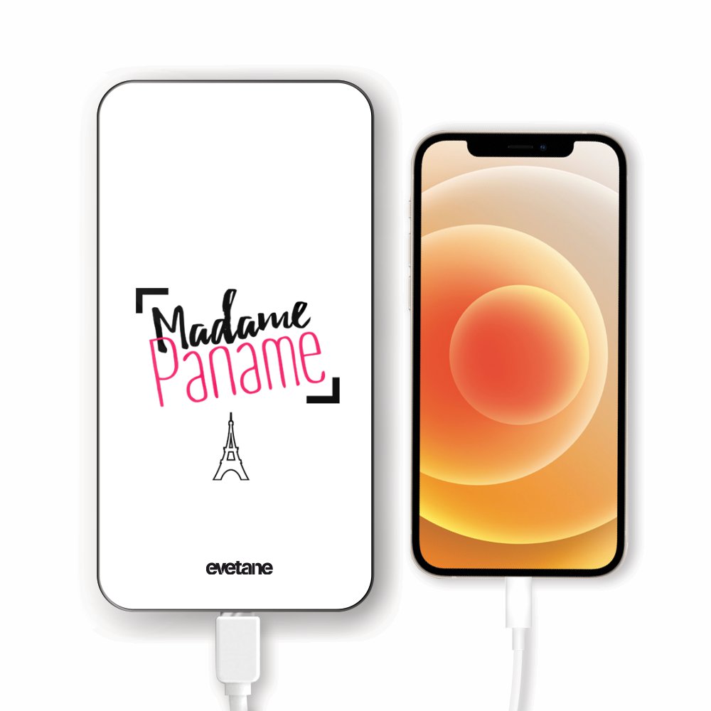 Batterie Batterie verre trempé 8000mAh Madame paname Motif Ecriture Tendance Evetane