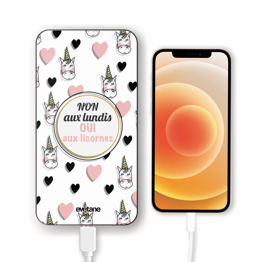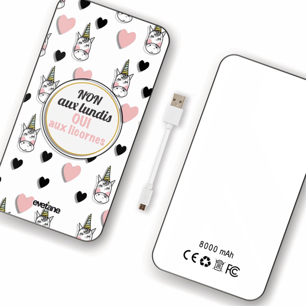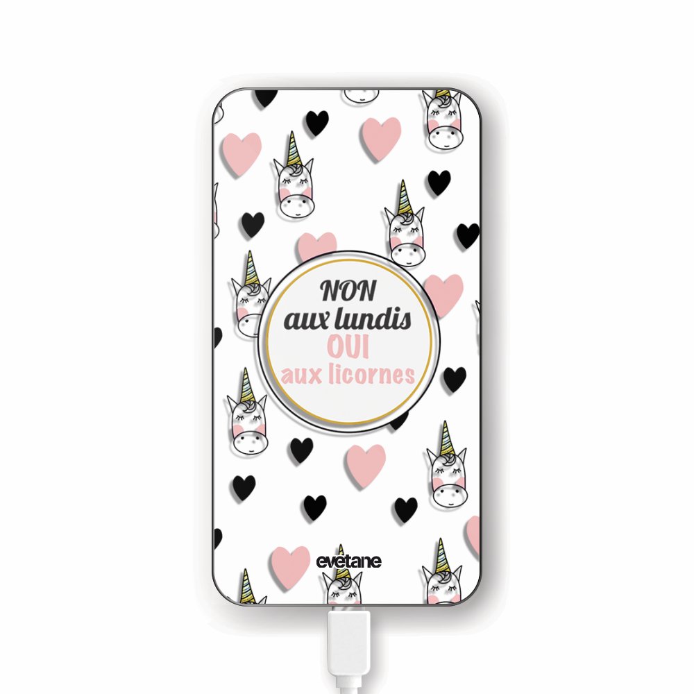 Batterie verre trempé 8000mAh Oui aux licornes Motif Ecriture Tendance Evetane