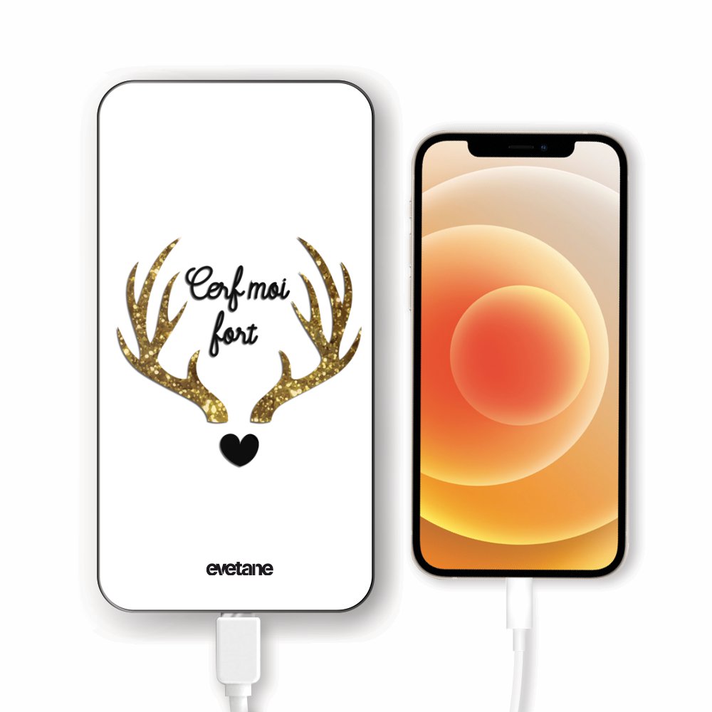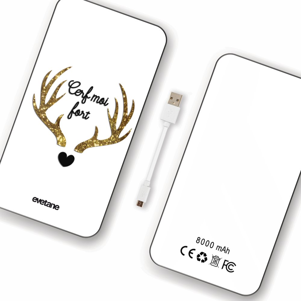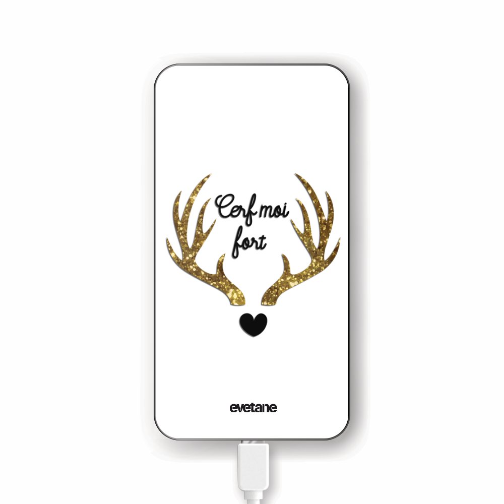 Batterie Batterie verre trempé 8000mAh Cerf Moi Fort Motif Ecriture Tendance Evetane