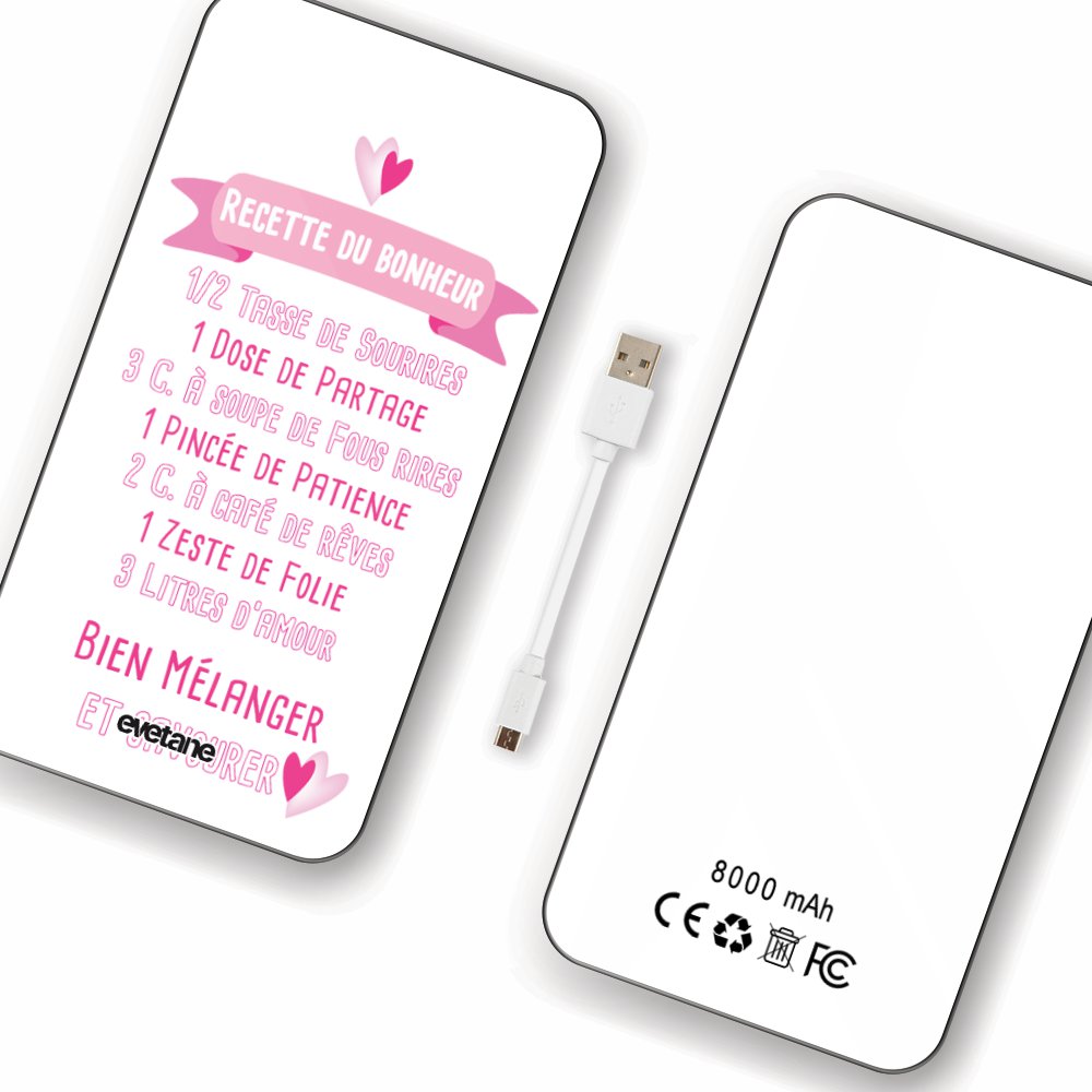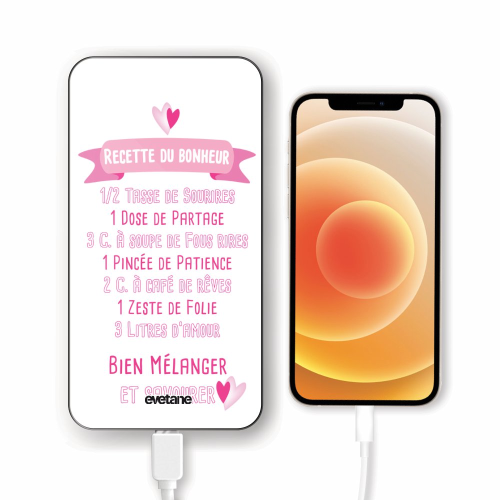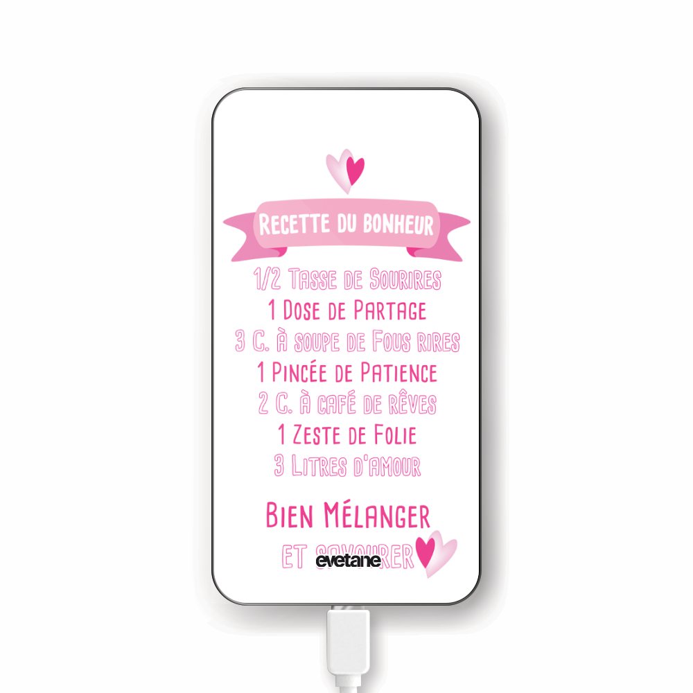 Batterie Batterie verre trempé 8000mAh Recette du Bonheur Motif Ecriture Tendance Evetane