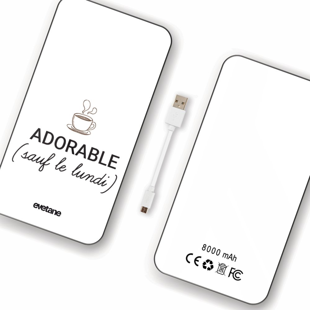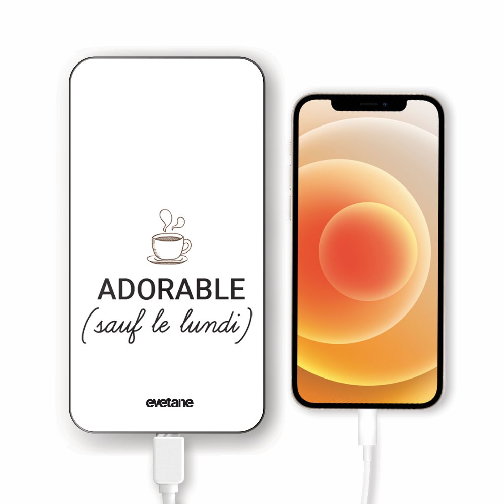 Batterie Batterie verre trempé 8000mAh Adorable Sauf le Lundi Motif Ecriture Tendance Evetane