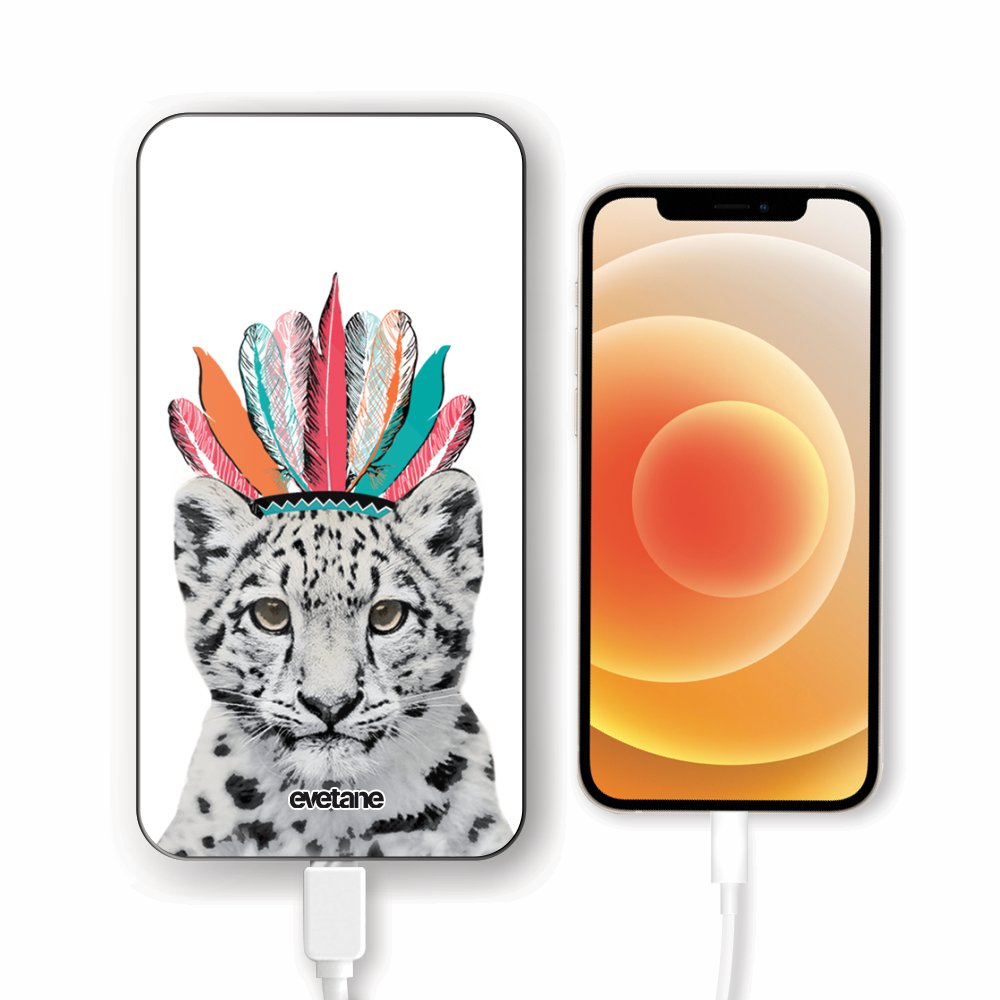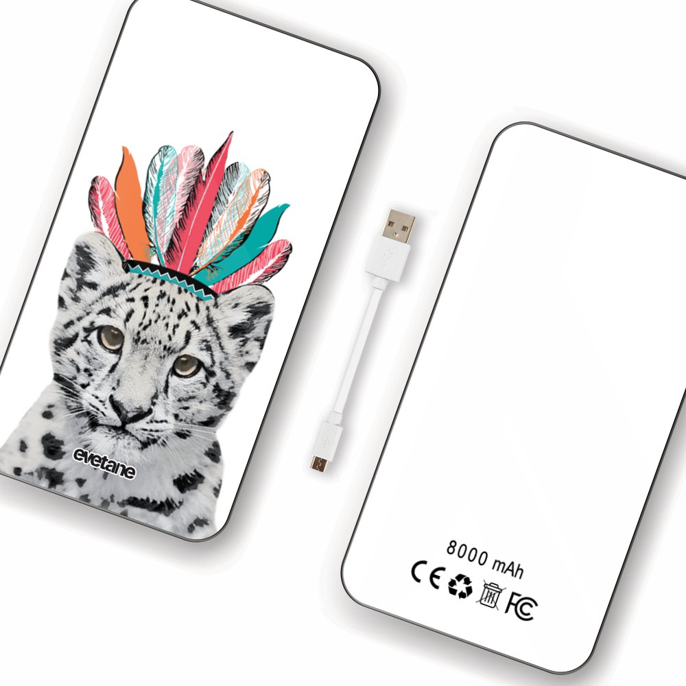 Batterie verre trempé 8000mAh Léopard Indien Motif Ecriture Tendance Evetane
