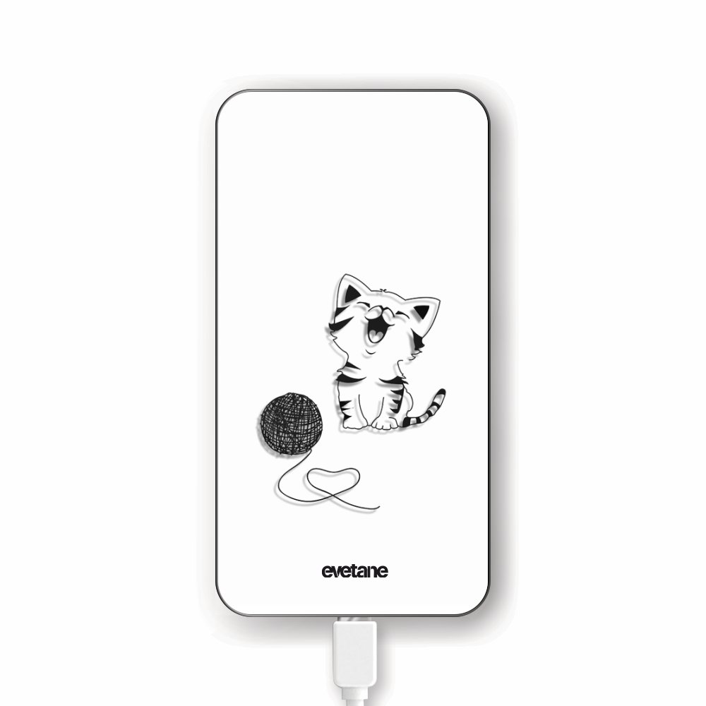 Batterie verre trempé 8000mAh Chat et Laine Motif Ecriture Tendance Evetane