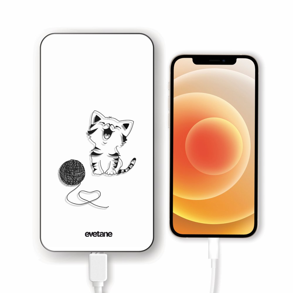 Batterie Batterie verre trempé 8000mAh Chat et Laine Motif Ecriture Tendance Evetane