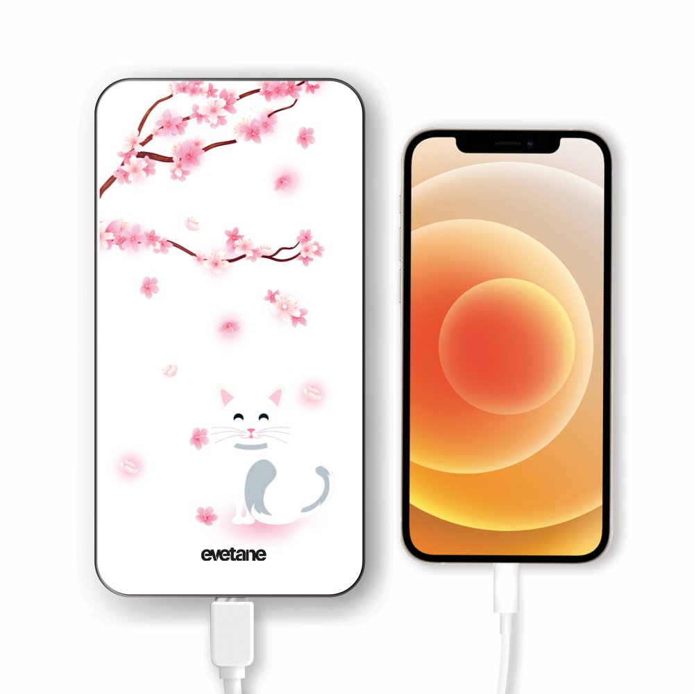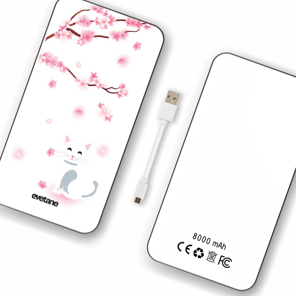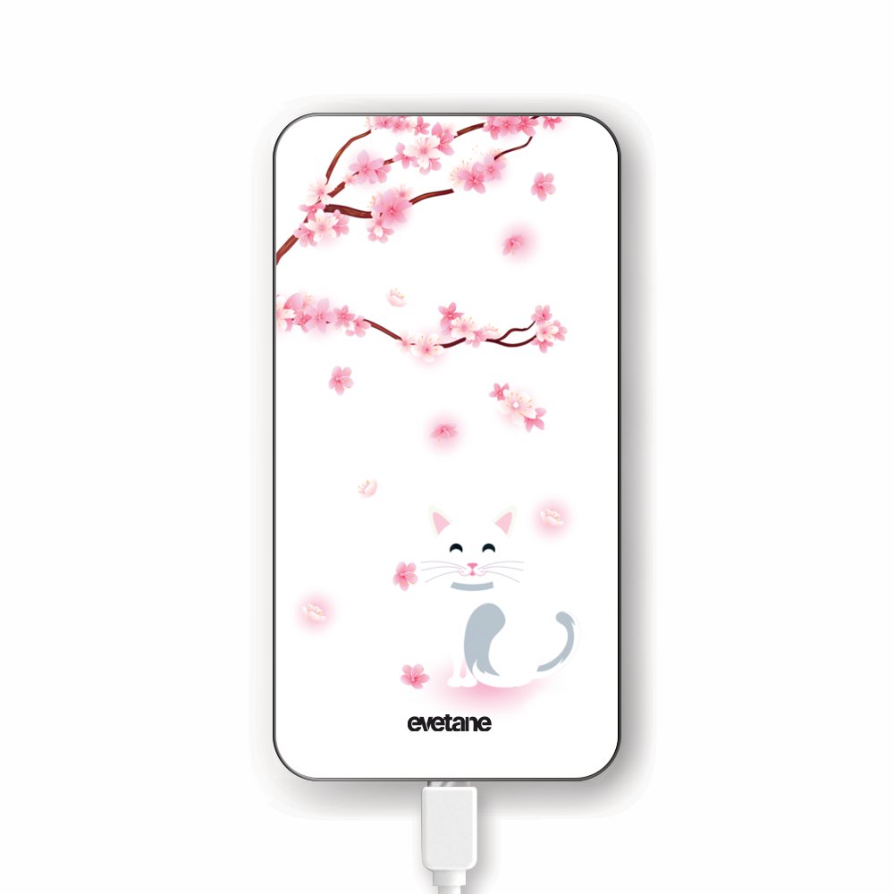 Batterie Batterie verre trempé 8000mAh Chat et Fleurs Motif Ecriture Tendance Evetane