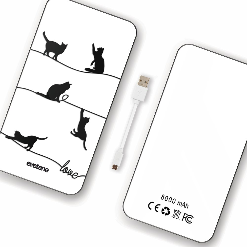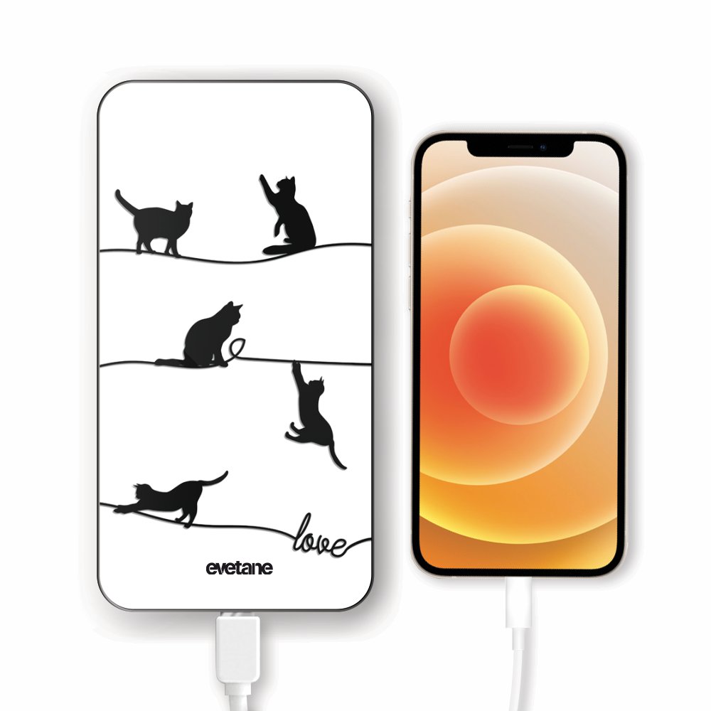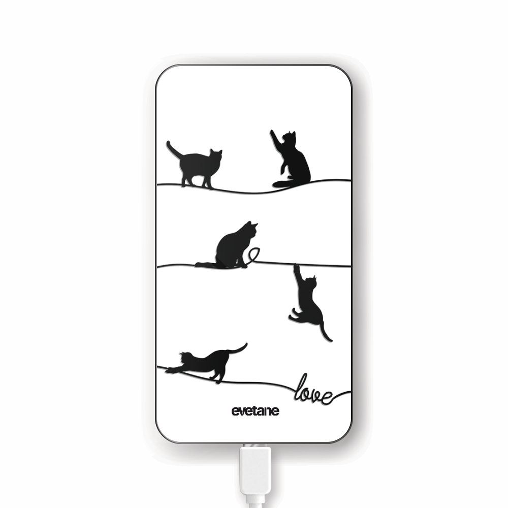 • Batterie verre trempé 8000mAh Chat Lignes Motif Ecriture Tendance Evetane