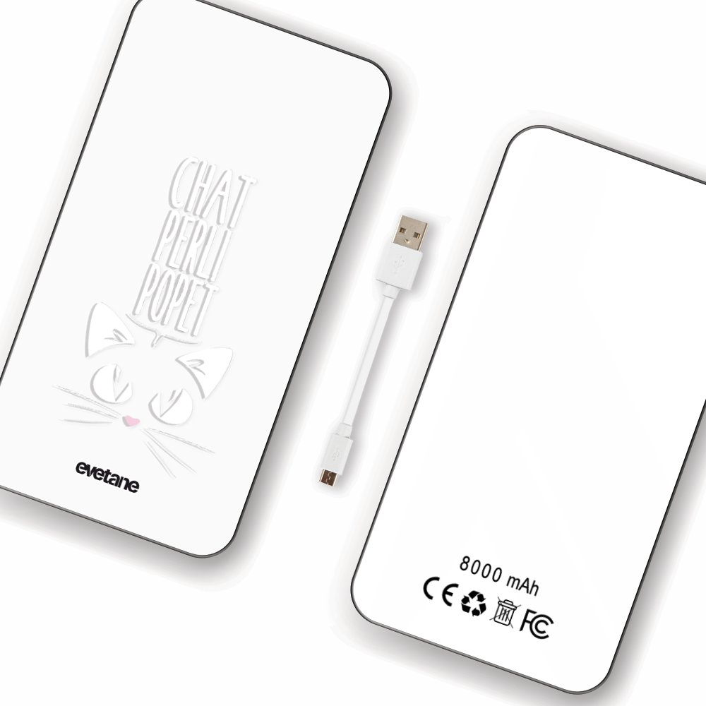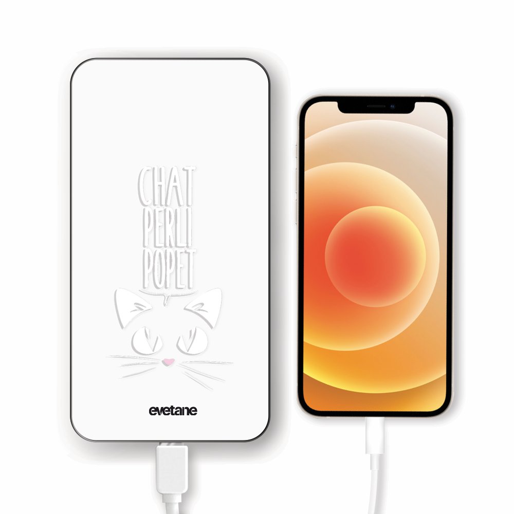 Batterie Batterie verre trempé 8000mAh Chat Perli Popet Motif Ecriture Tendance Evetane