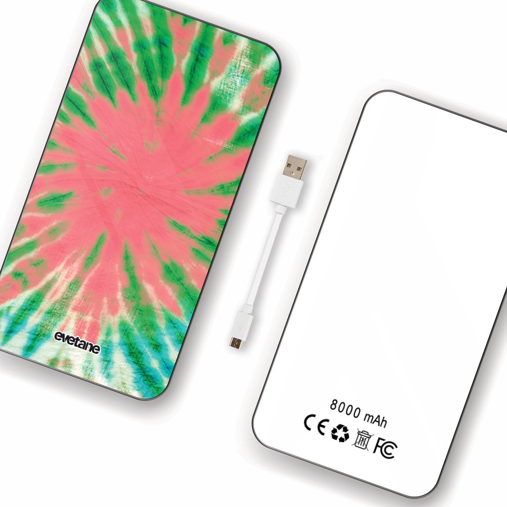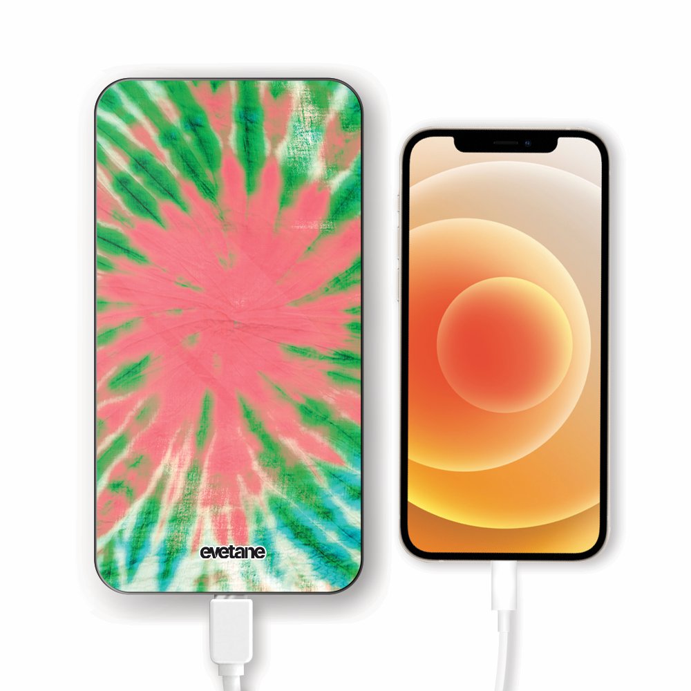 Batterie Batterie verre trempé 8000mAh Tie and Dye Corail Motif Ecriture Tendance Evetane