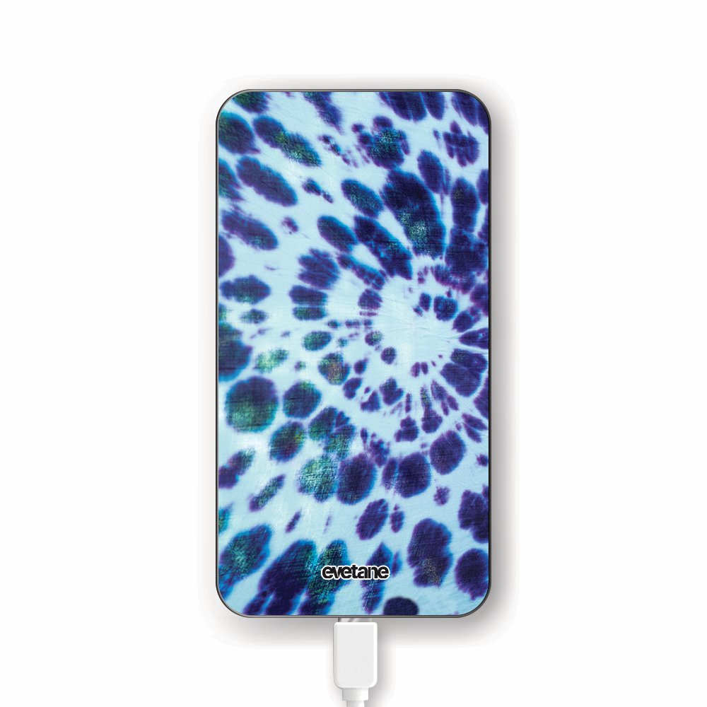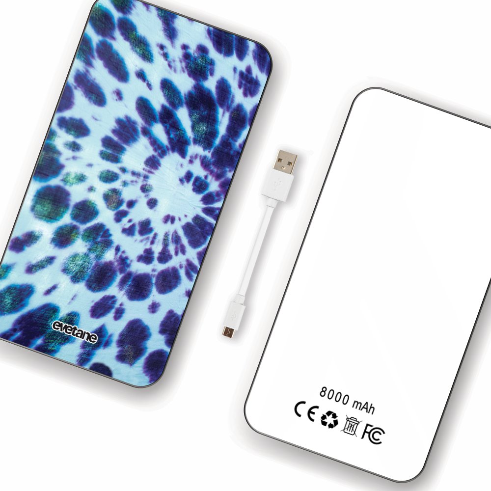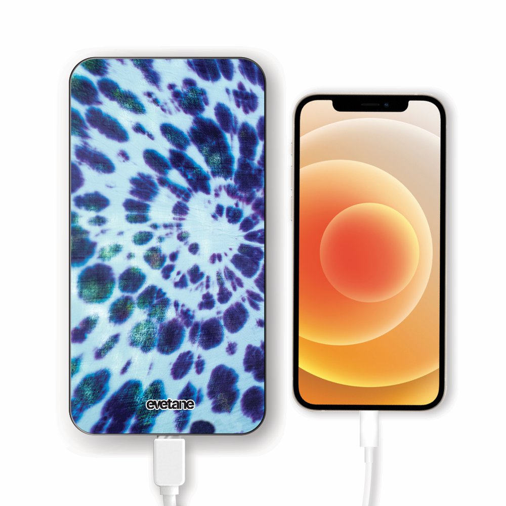 Batterie Batterie verre trempé 8000mAh Tie and Dye Bleu Motif Ecriture Tendance Evetane
