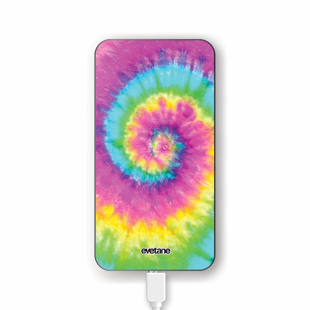 Batterie verre trempé 8000mAh Tie and Dye Rainbow Motif Ecriture Tendance Evetane