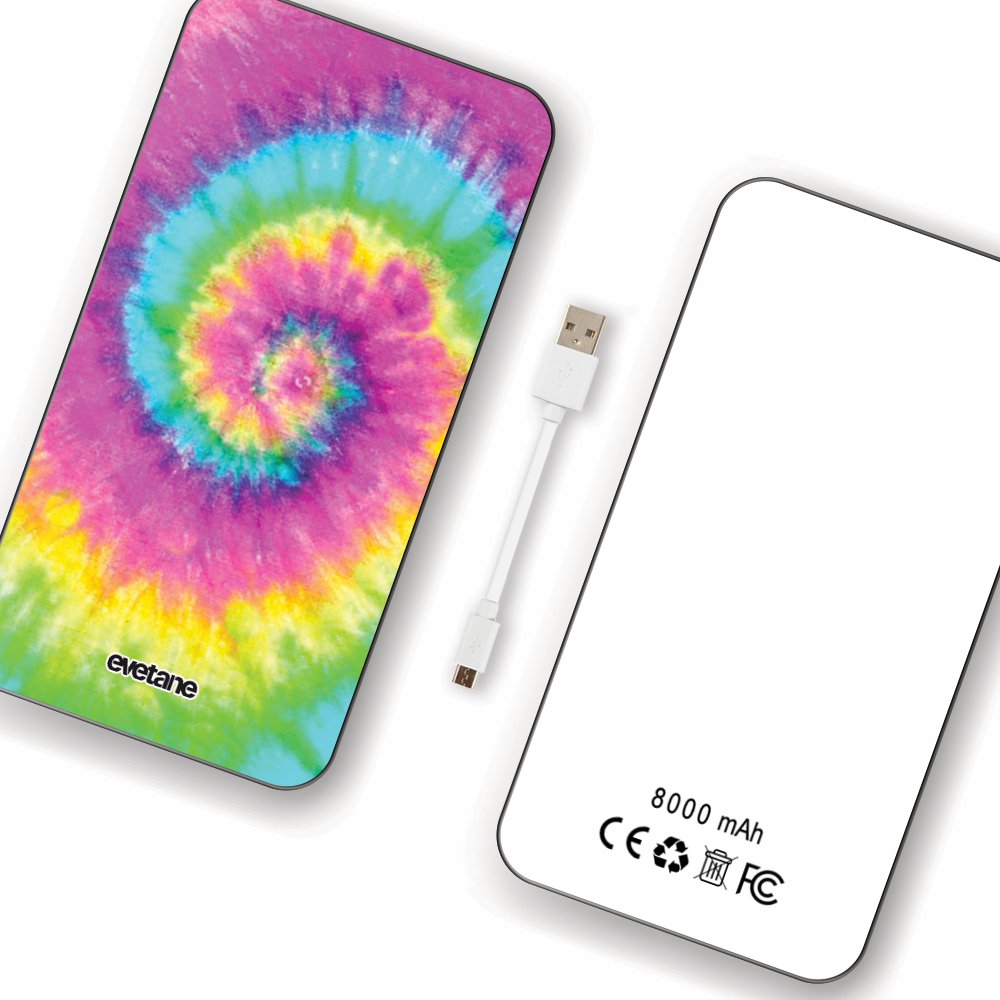 Batterie Batterie verre trempé 8000mAh Tie and Dye Rainbow Motif Ecriture Tendance Evetane