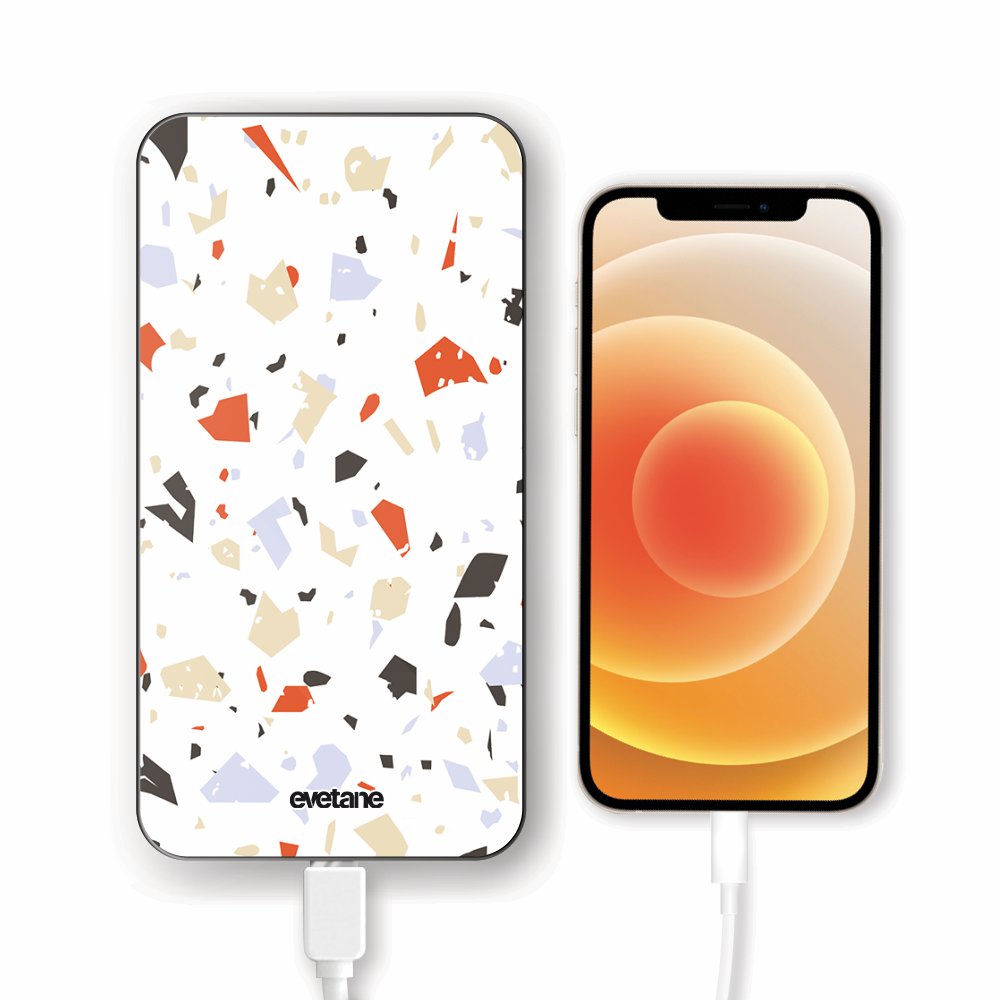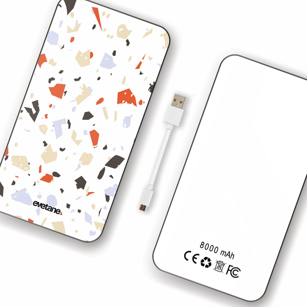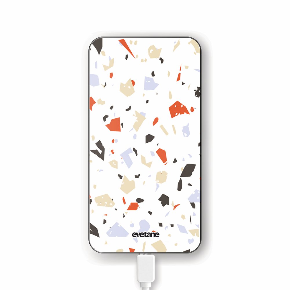 Batterie verre trempé 8000mAh Terrazzo Blanc Motif Ecriture Tendance Evetane