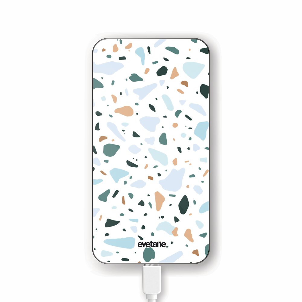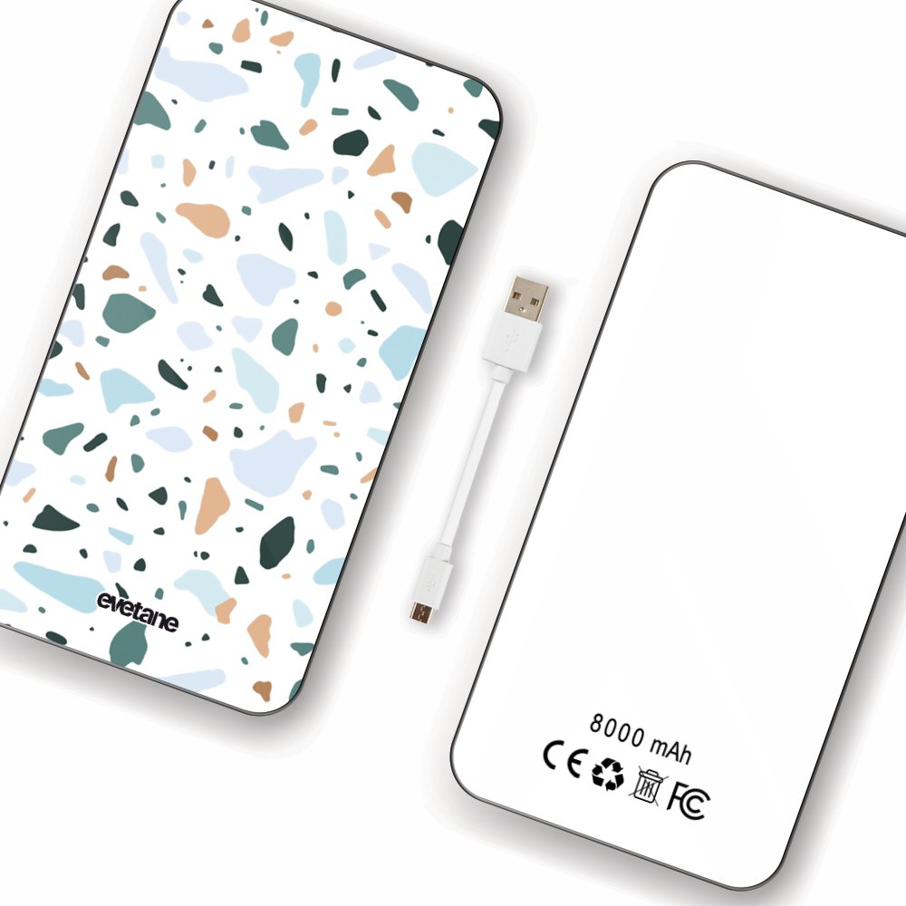 Batterie Batterie verre trempé 8000mAh Terrazzo Vert Motif Ecriture Tendance Evetane