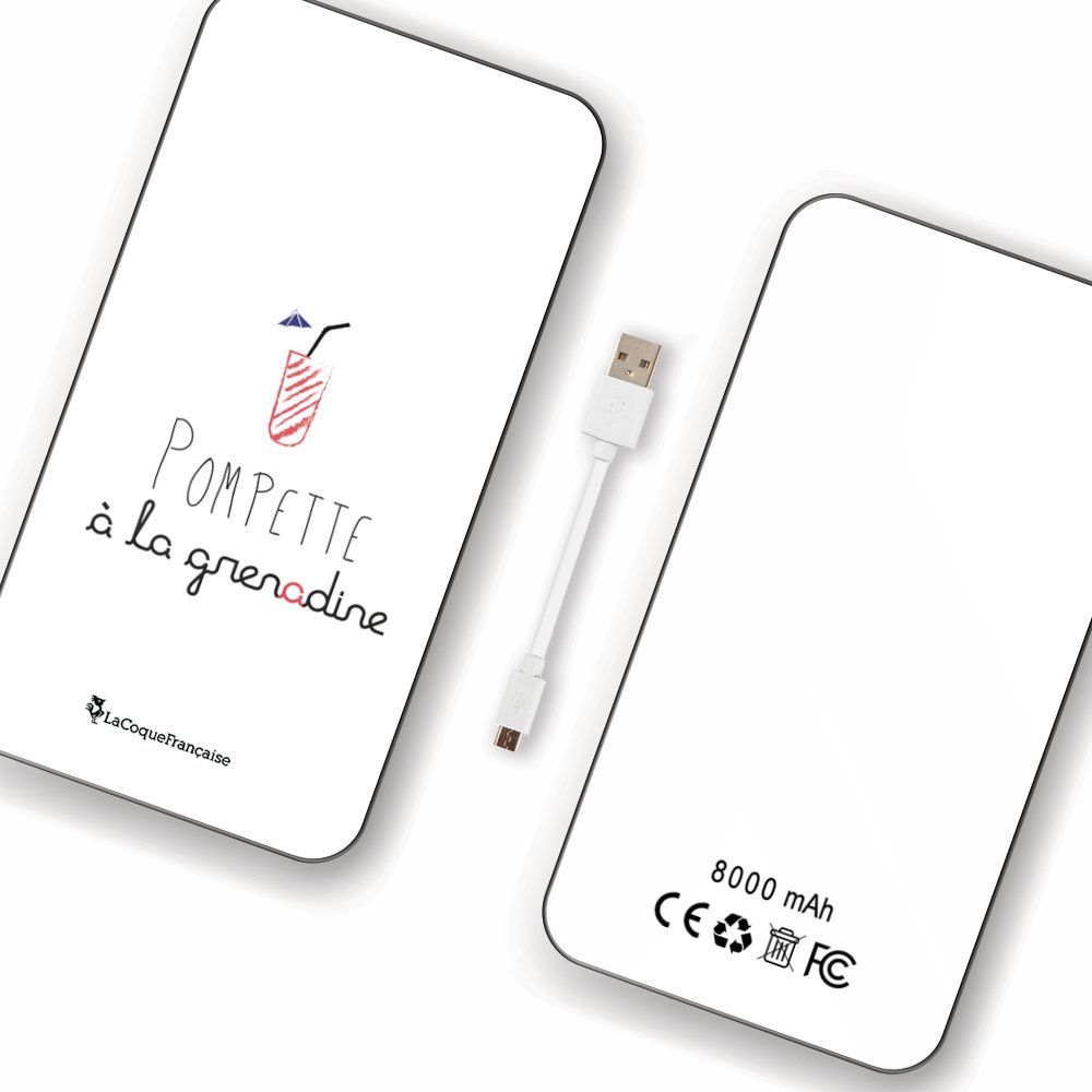 • Batterie en verre trempé universel 8000mAh Pompette à la grenadine Motif Ecriture Tendance La Coque Francaise