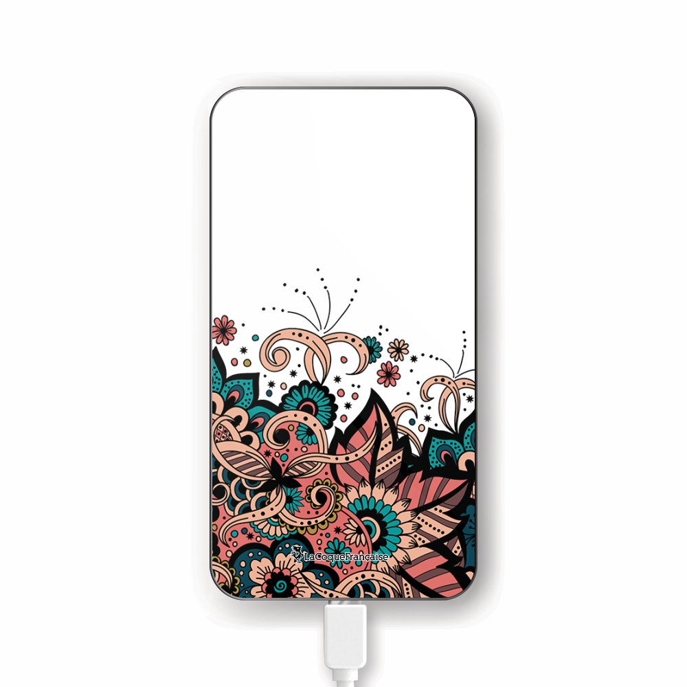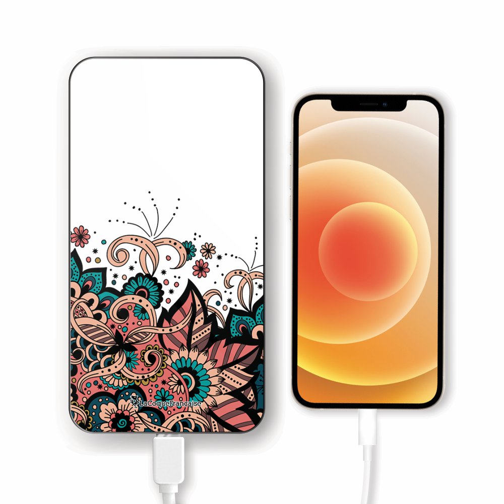 • Batterie en verre trempé universel 8000mAh Cachemire bleu corail Motif Ecriture Tendance La Coque Francaise