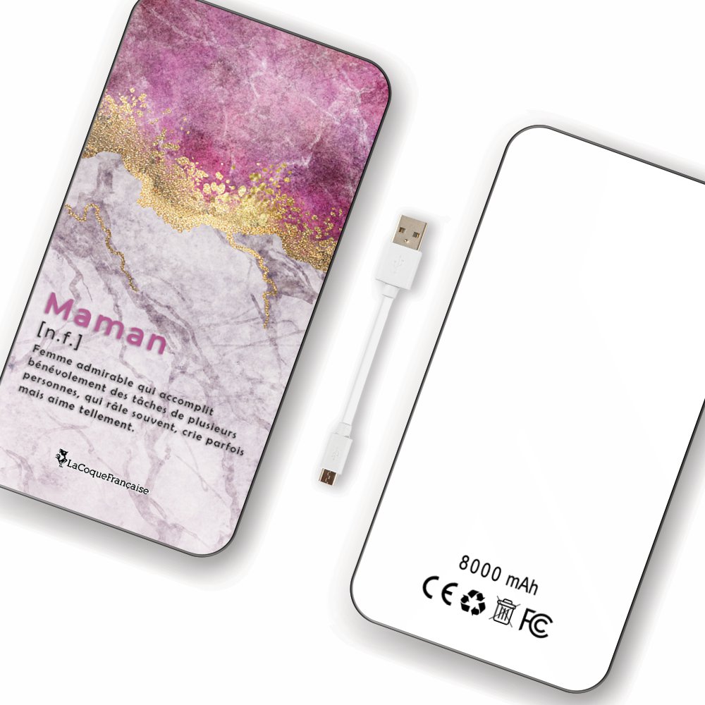 Batterie en verre trempé universel 8000mAh Maman Marbre Motif Ecriture Tendance La Coque Francaise