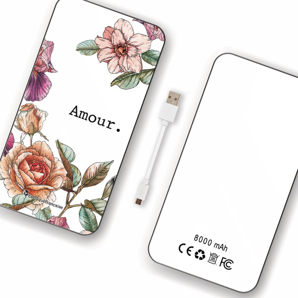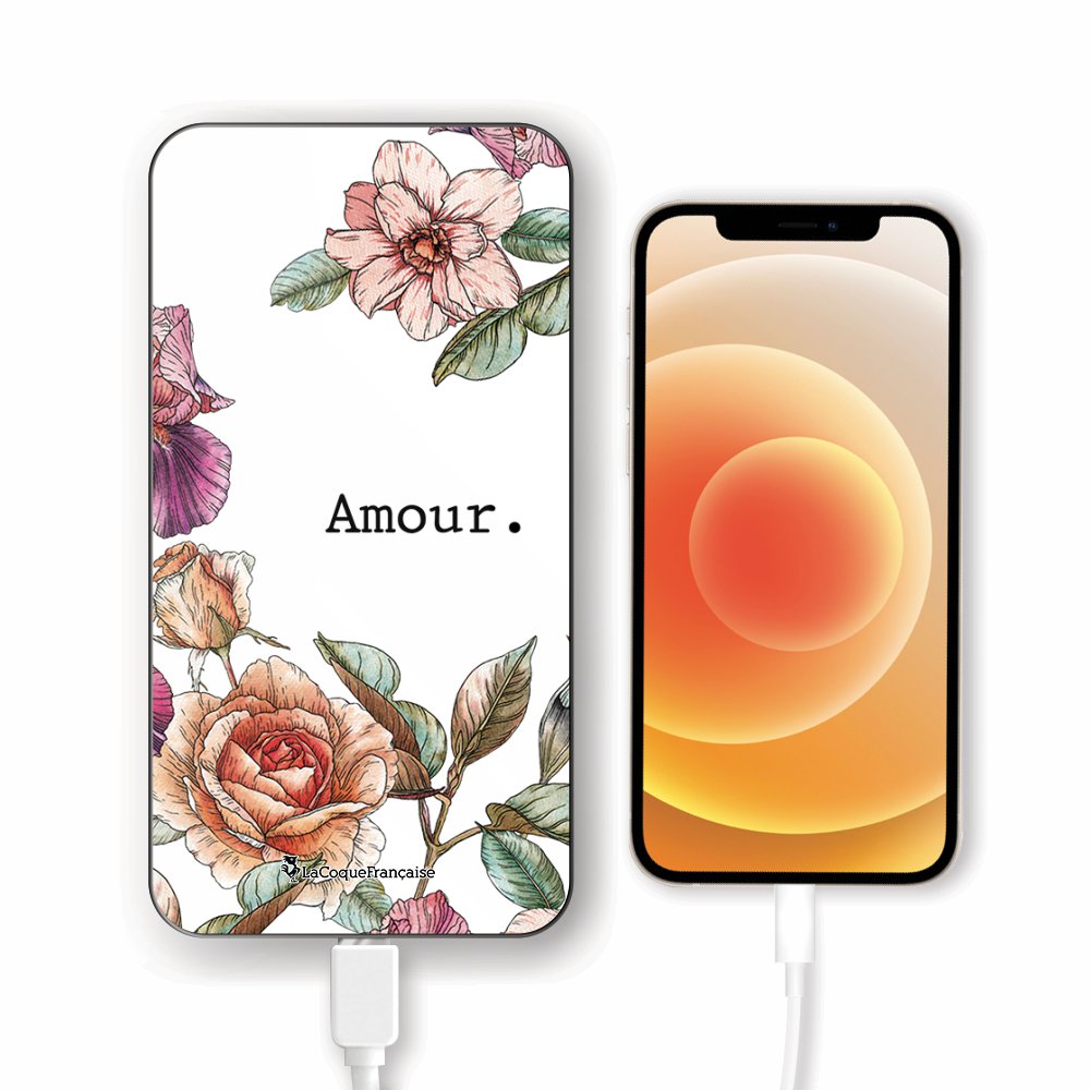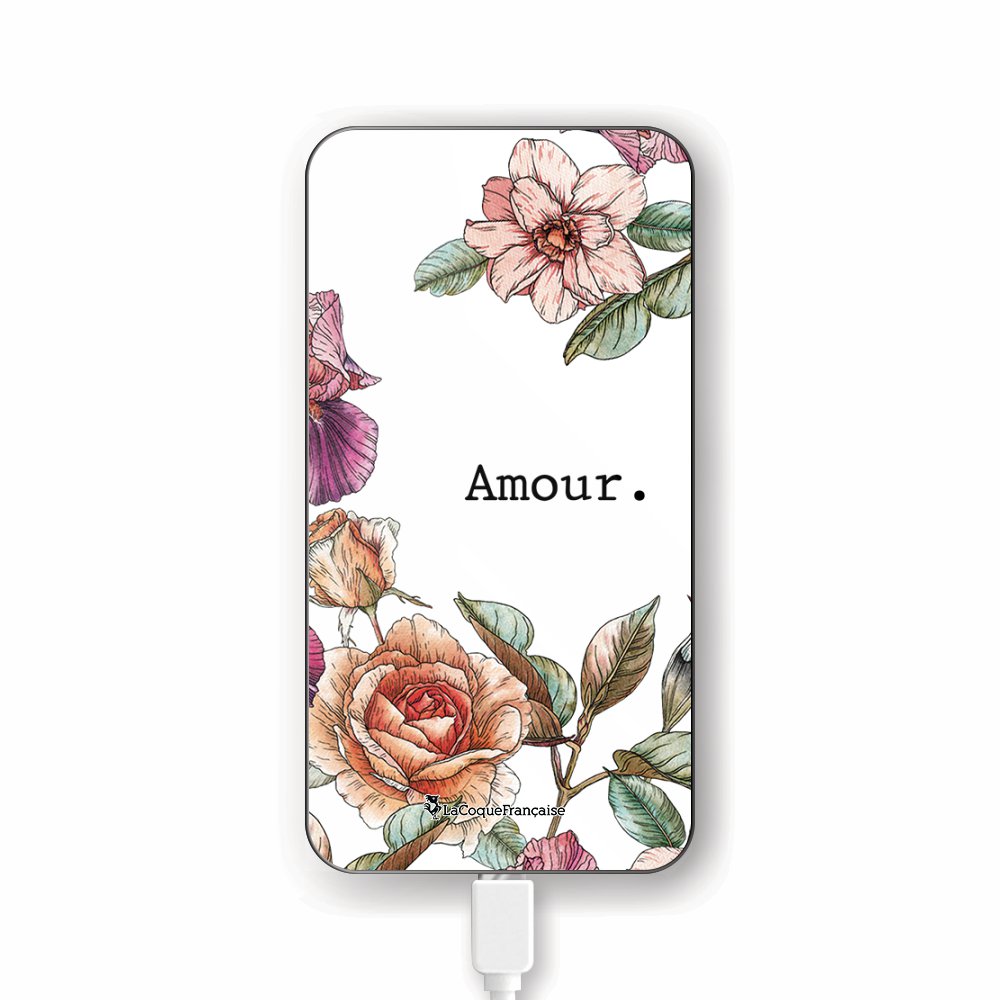 Batterie en verre trempé universel 8000mAh Amour en fleurs Motif Ecriture Tendance La Coque Francaise