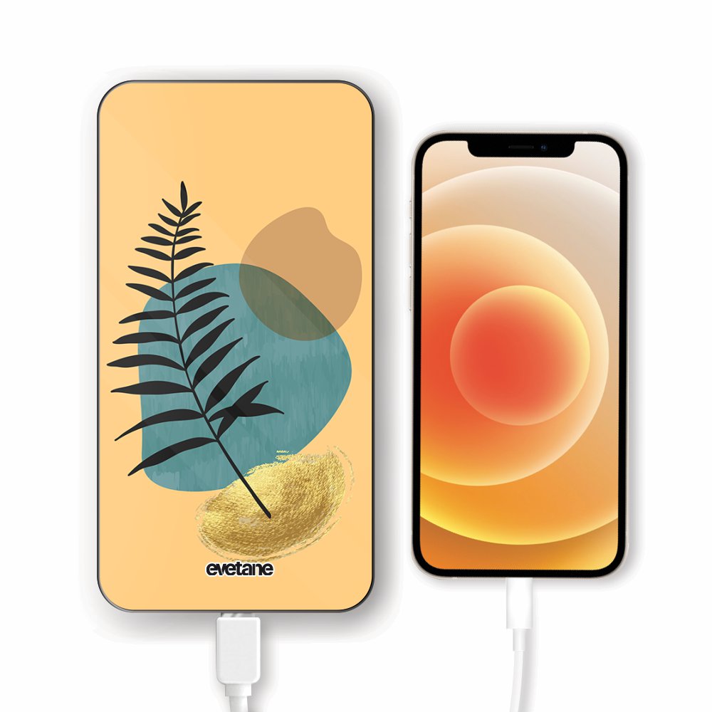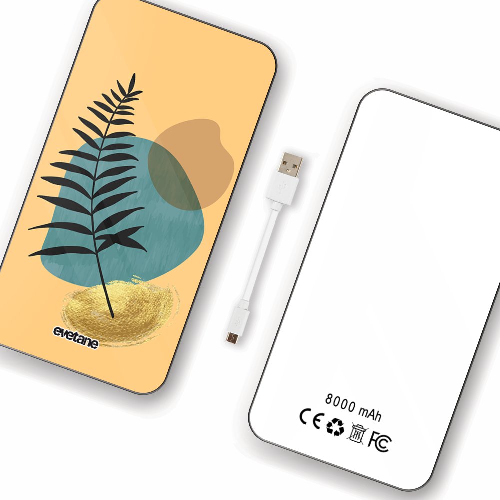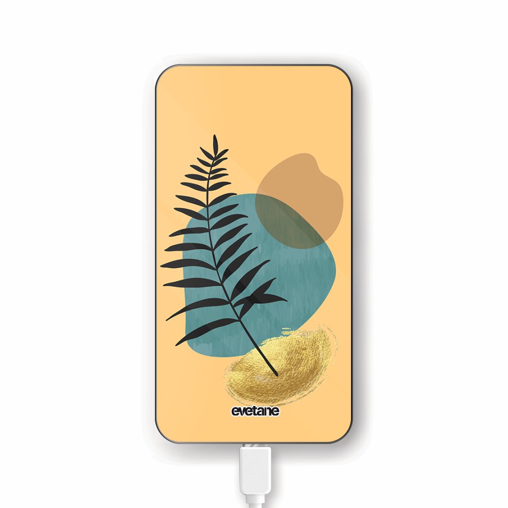 • Batterie verre trempé 8000mAh Feuille noir et pierre bleue Motif Ecriture Tendance Evetane