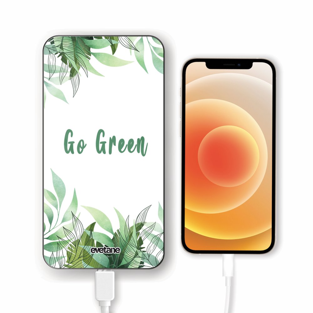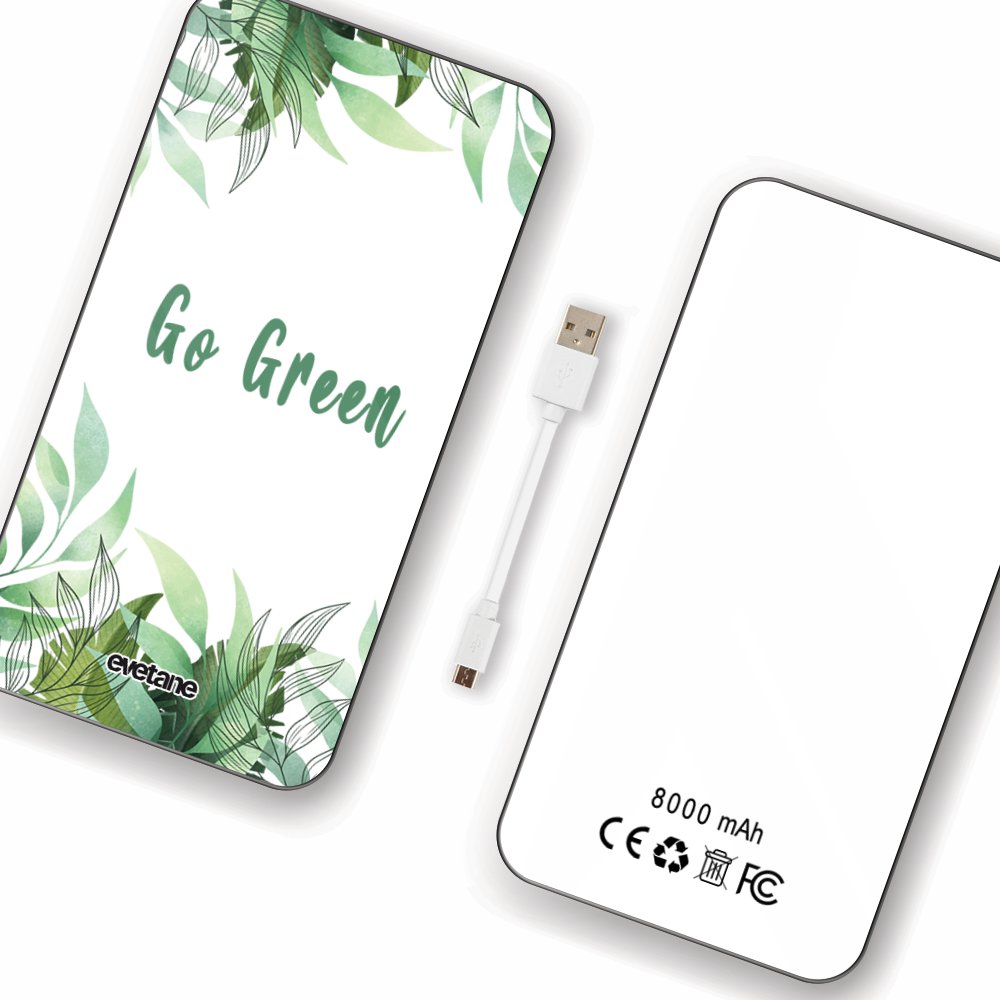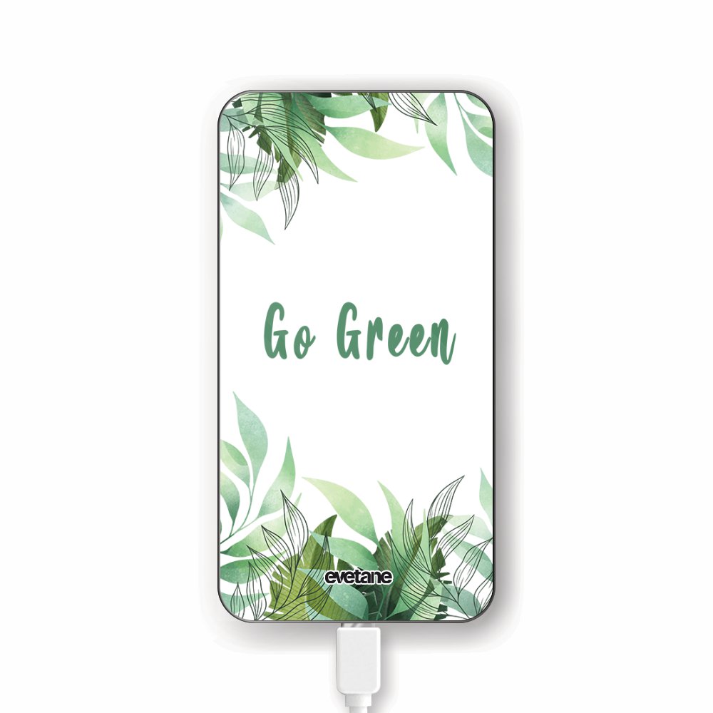 • Batterie verre trempé 8000mAh Go green Motif Ecriture Tendance Evetane