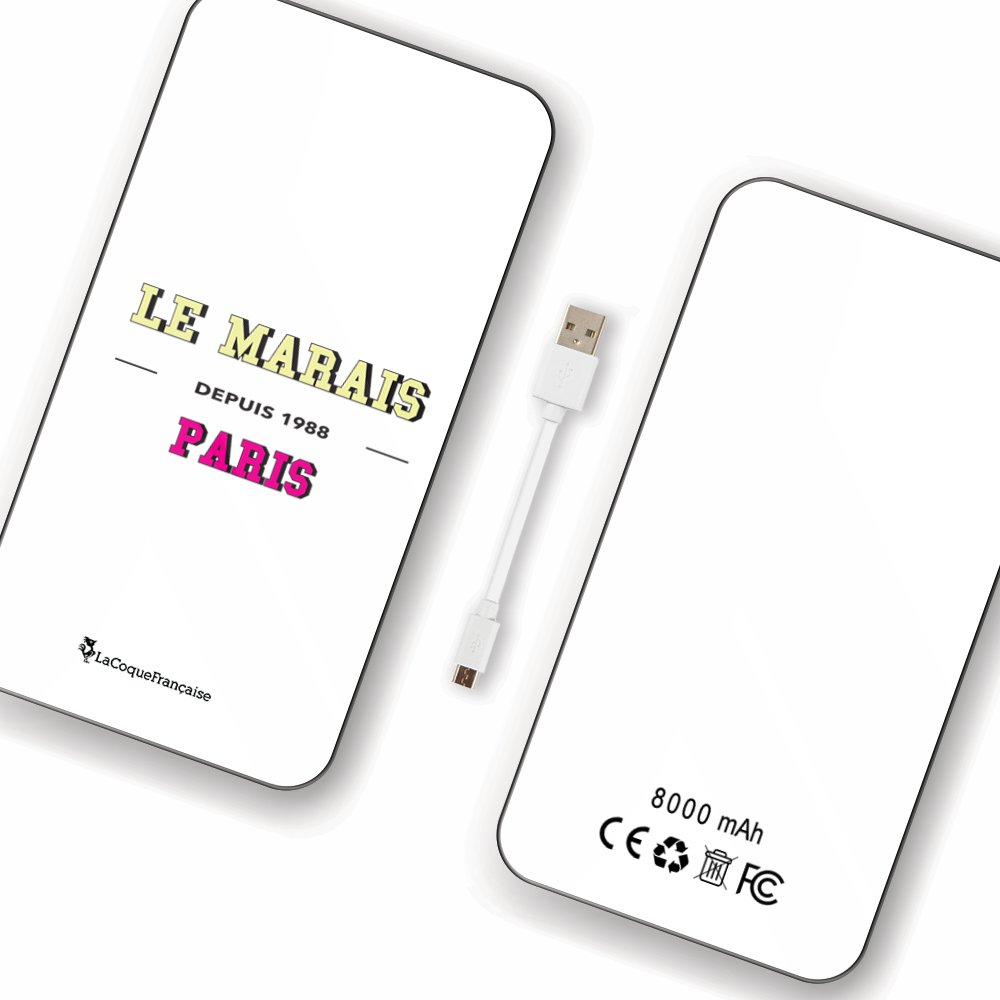 • Batterie en verre trempé universel 8000mAh Le Marais Motif Ecriture Tendance La Coque Francaise