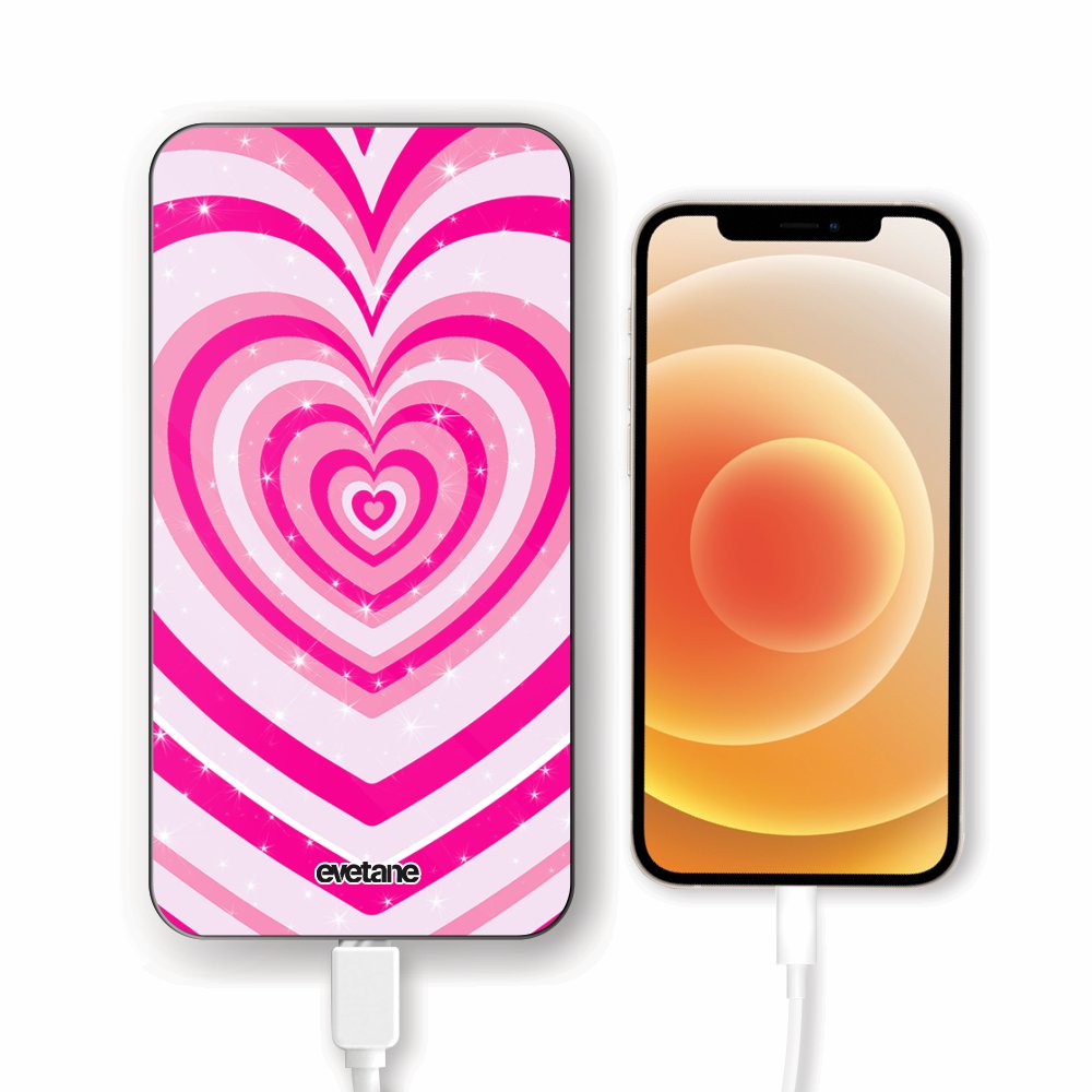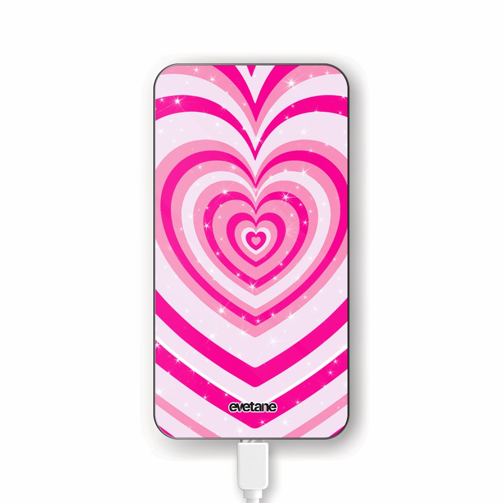 Batterie verre trempé 8000mAh Coeur Psychédélique Rose Motif Ecriture Tendance Evetane