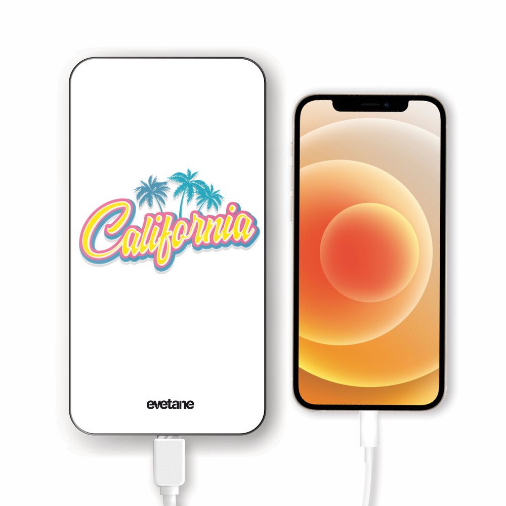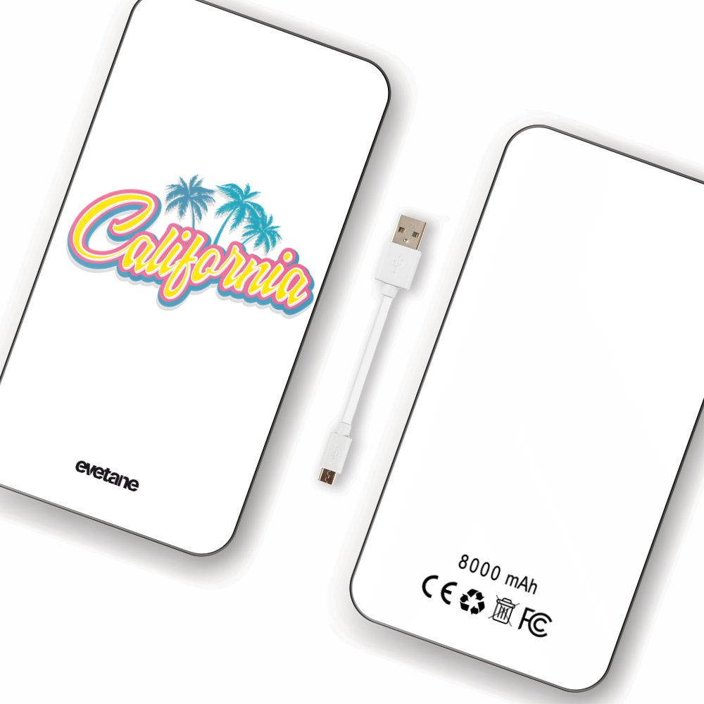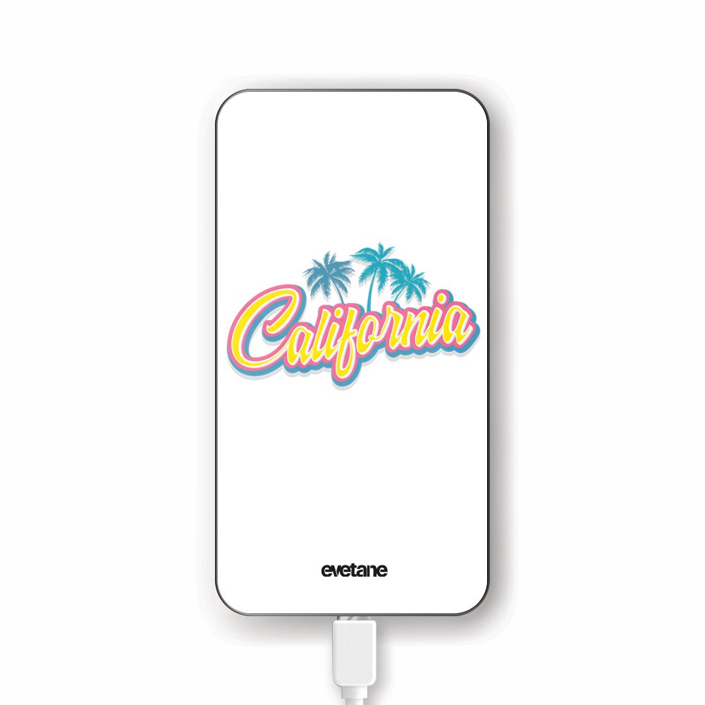 Batterie verre trempé 8000mAh California Motif Ecriture Tendance Evetane