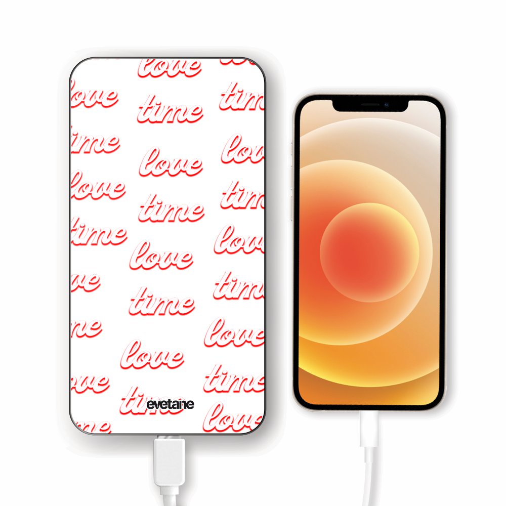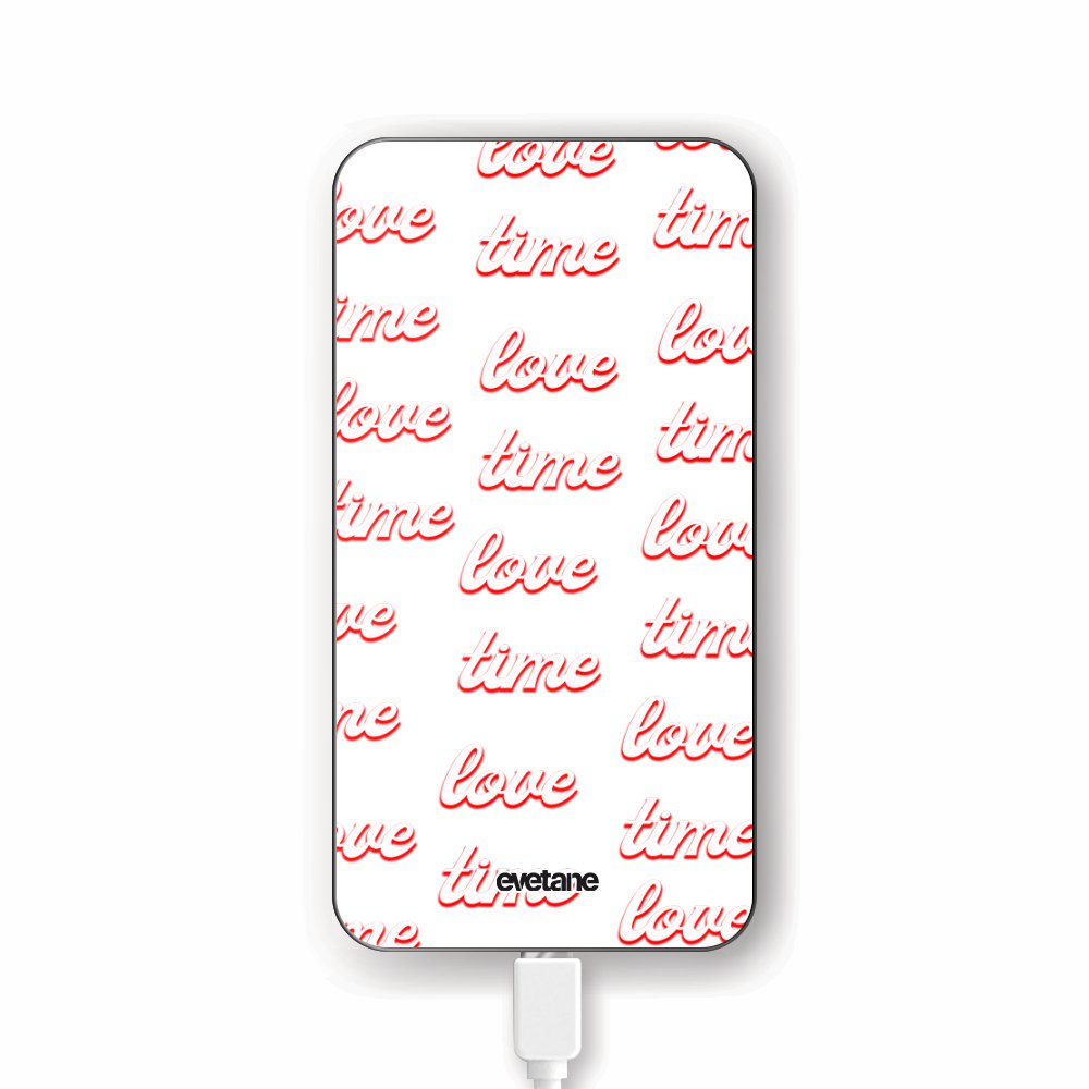 • Batterie verre trempé 8000mAh Love Time Motif Ecriture Tendance Evetane