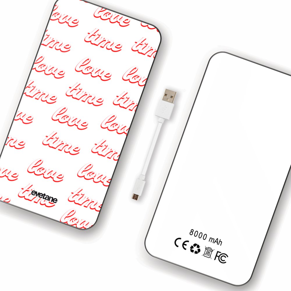 Batterie verre trempé 8000mAh Love Time Motif Ecriture Tendance Evetane