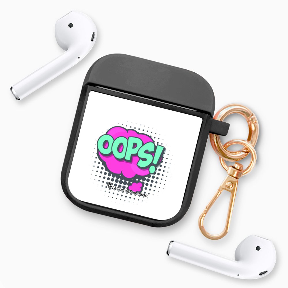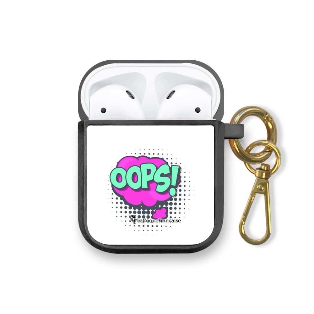 Housse pour airpods silicone liquide noir OOPS Motif Ecriture Tendance La Coque Francaise