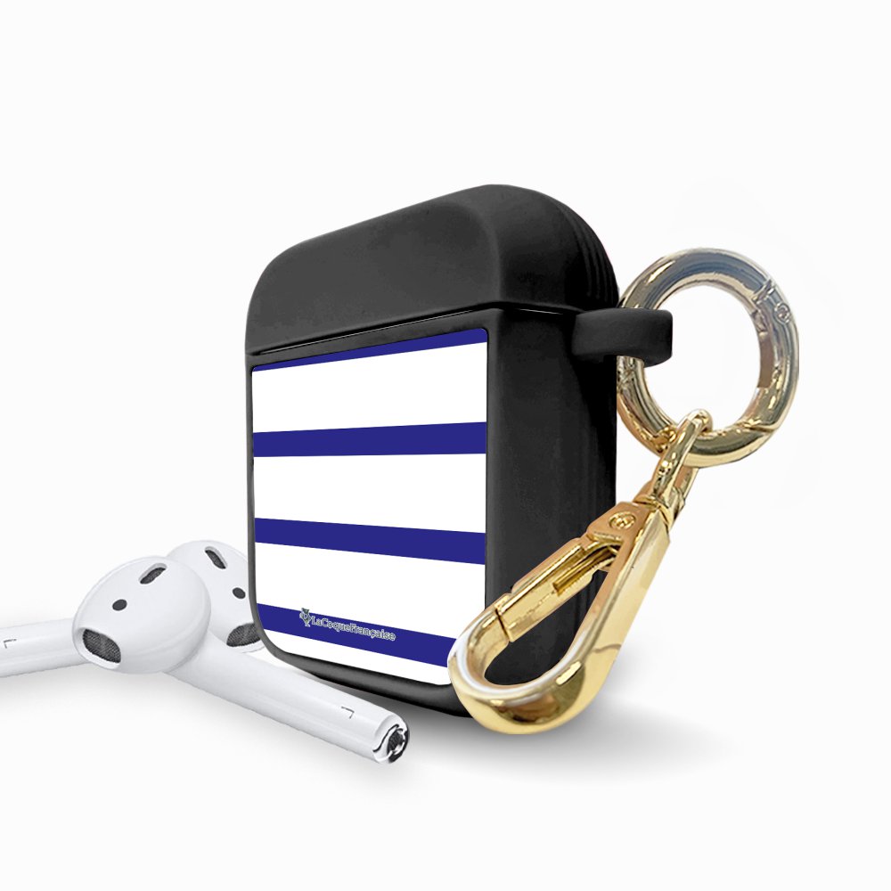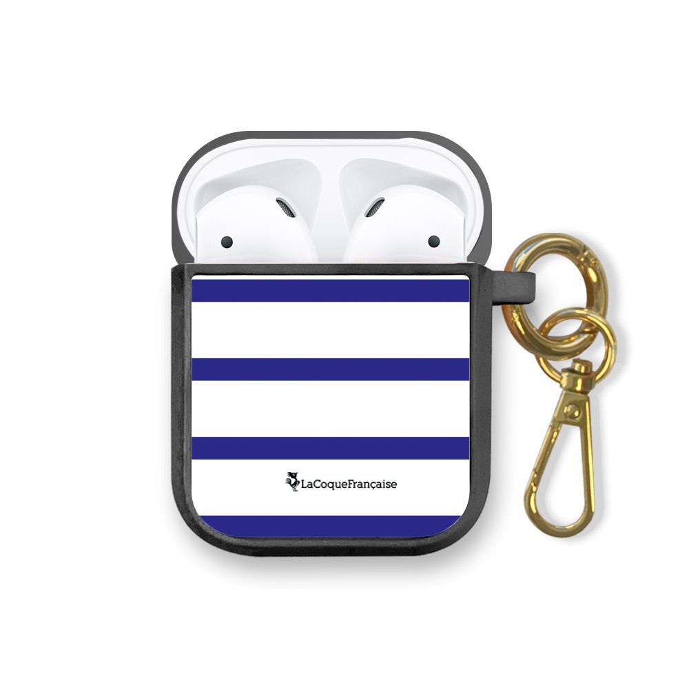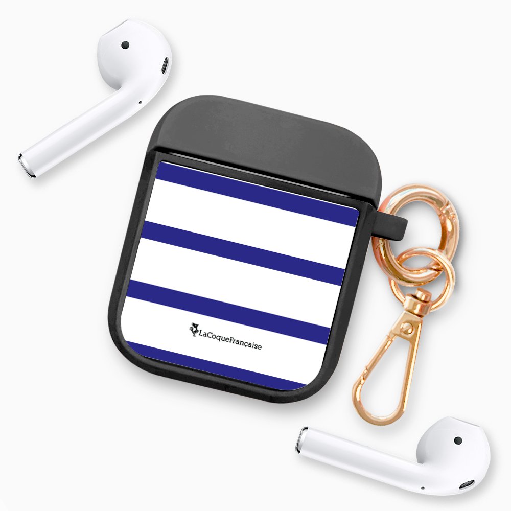 • > High Tech>Audio>Accessoires Airpod>Housse pour airpods silicone liquide noir Marinière Bleue Motif Ecriture Tendance La Coque Francaise