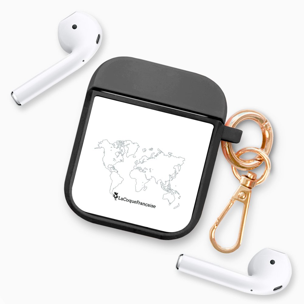 Housse pour airpods silicone liquide noir Carte Motif Ecriture Tendance La Coque Francaise