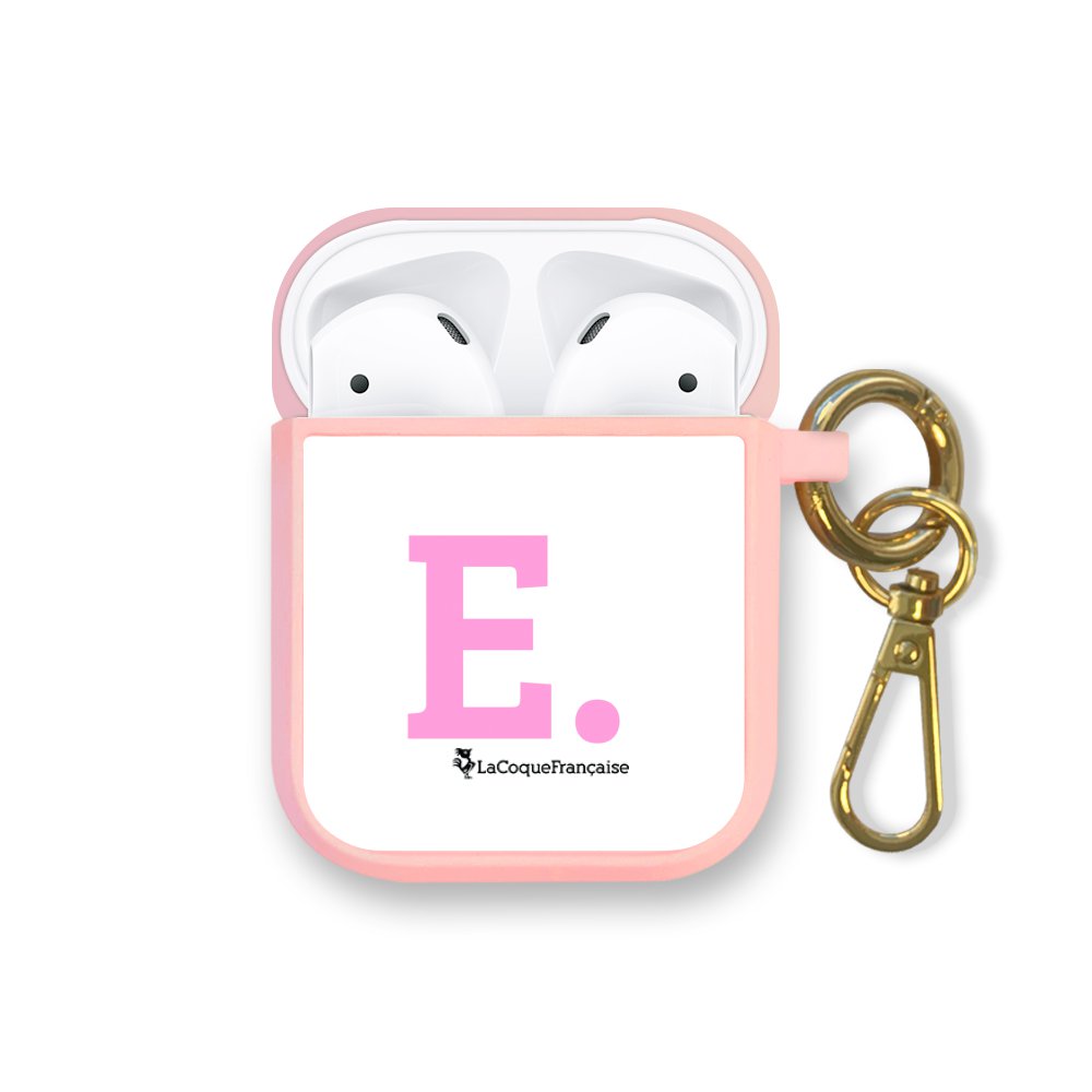 Housse pour Airpods silicone liquide rose Initiale E Motif Ecriture Tendance La Coque Francaise