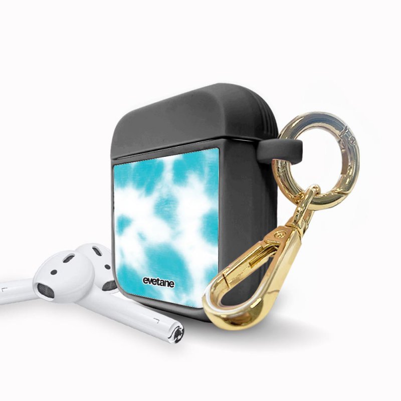 • Housse pour Airpods silicone liquide noir Tie And Dye Motif Ecriture Tendance Evetane