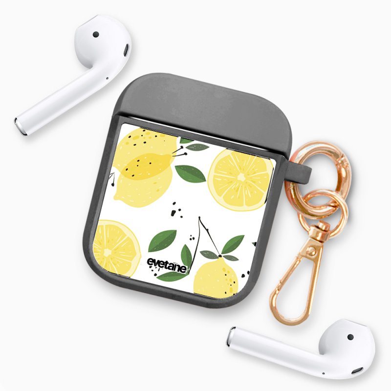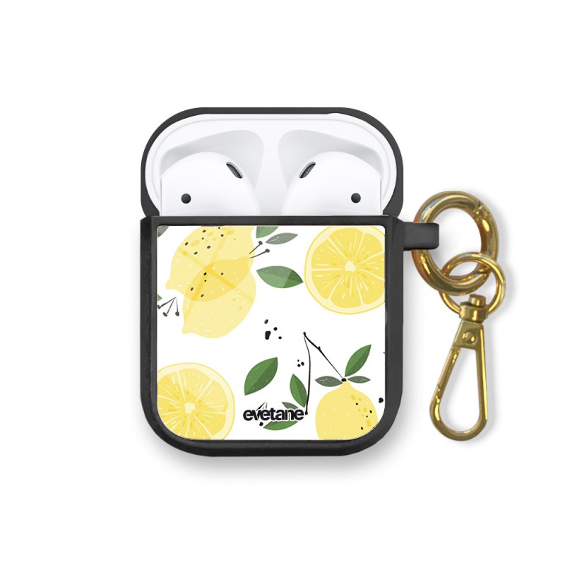 • > High Tech>Audio>Accessoires Airpod>Housse pour Airpods silicone liquide noir Citrons Motif Ecriture Tendance Evetane