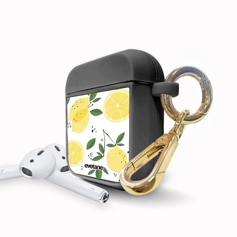 • Housse pour Airpods silicone liquide noir Citrons Motif Ecriture Tendance Evetane