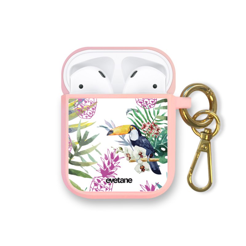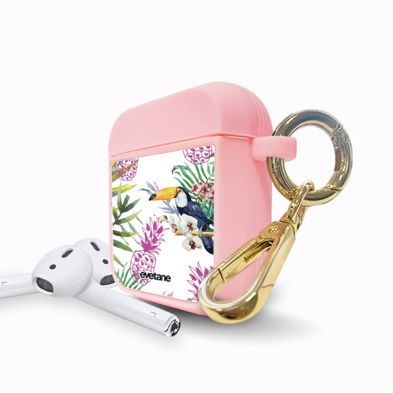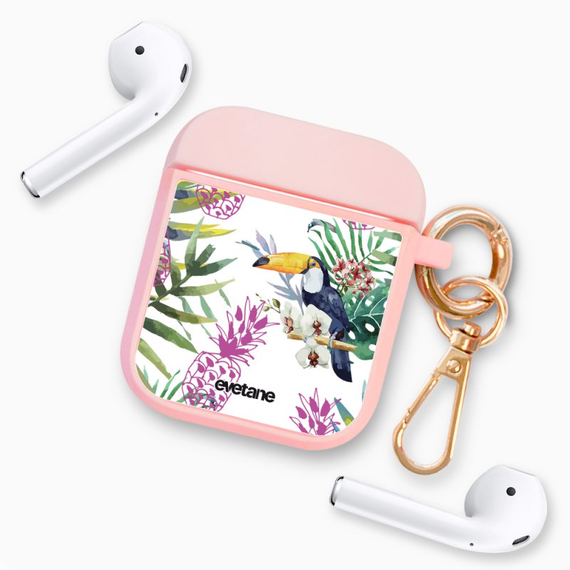 • Housse pour Airpods silicone liquide rose Jungle Tropicale Motif Ecriture Tendance Evetane