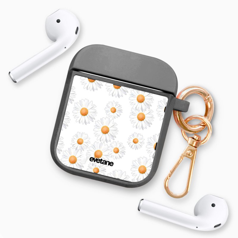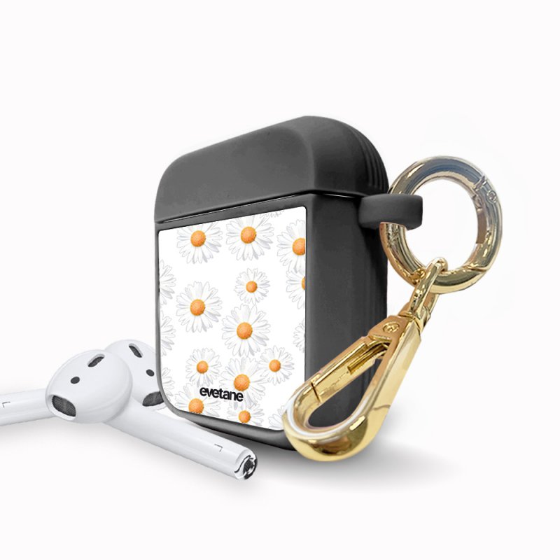 • > High Tech>Audio>Accessoires Airpod>Housse pour Airpods silicone liquide noir Marguerite Motif Ecriture Tendance Evetane