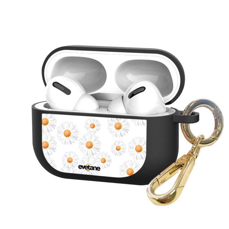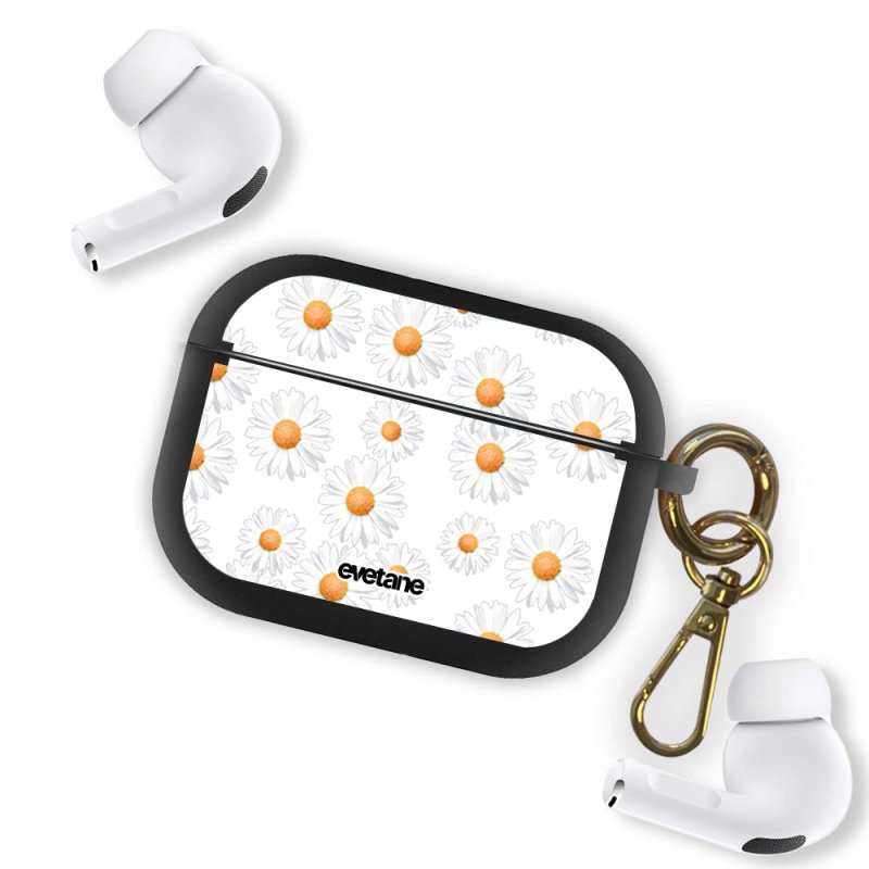 • > High Tech>Audio>Accessoires Airpod>Housse pour Airpods Pro silicone liquide noir Marguerite Motif Ecriture Tendance Evetane