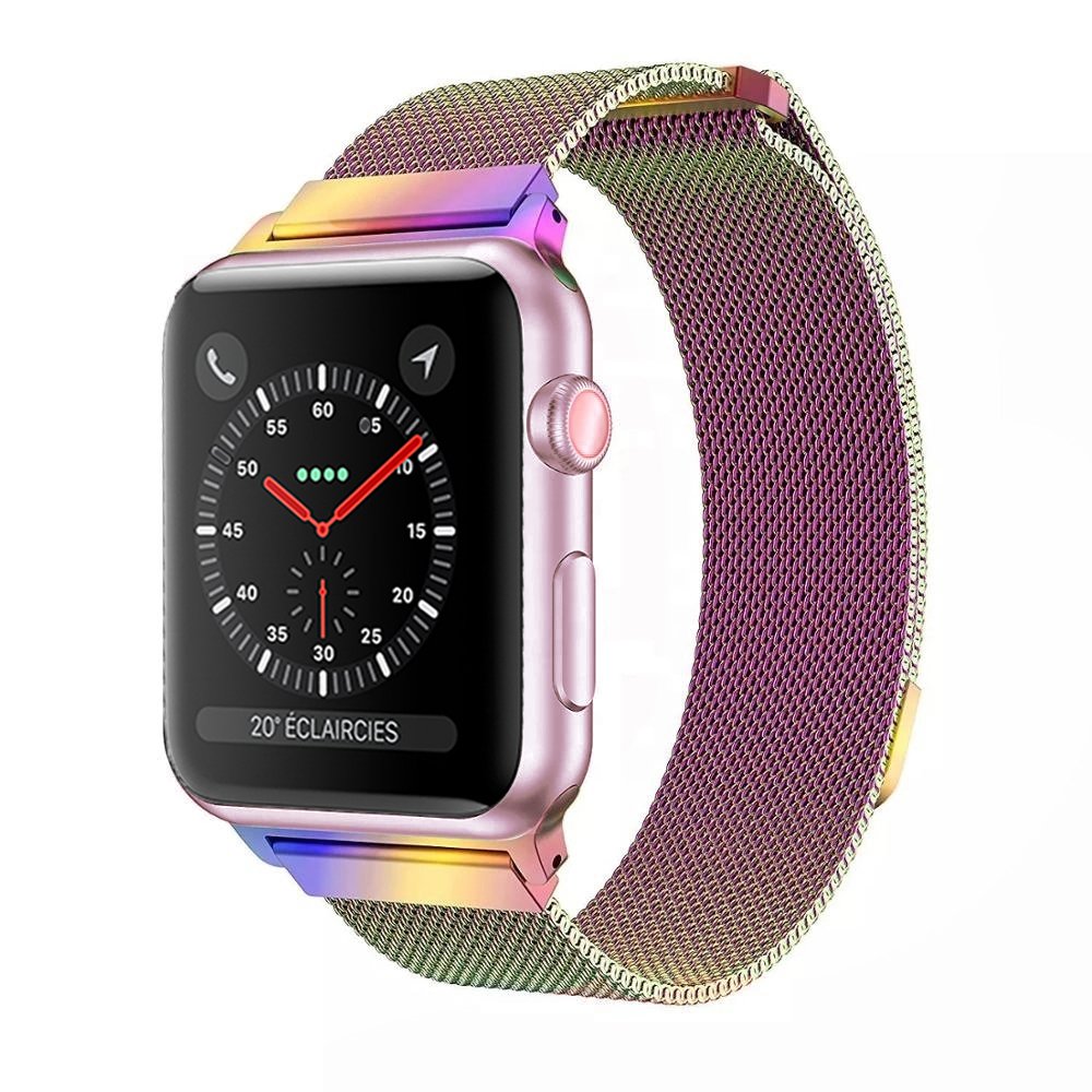 • > High Tech>Objets connectés>Accessoires Apple Watch>Bracelet 38-40 mm compatible avec Apple Watch métalisé rose arc en ciel (Vendu sans la montre)