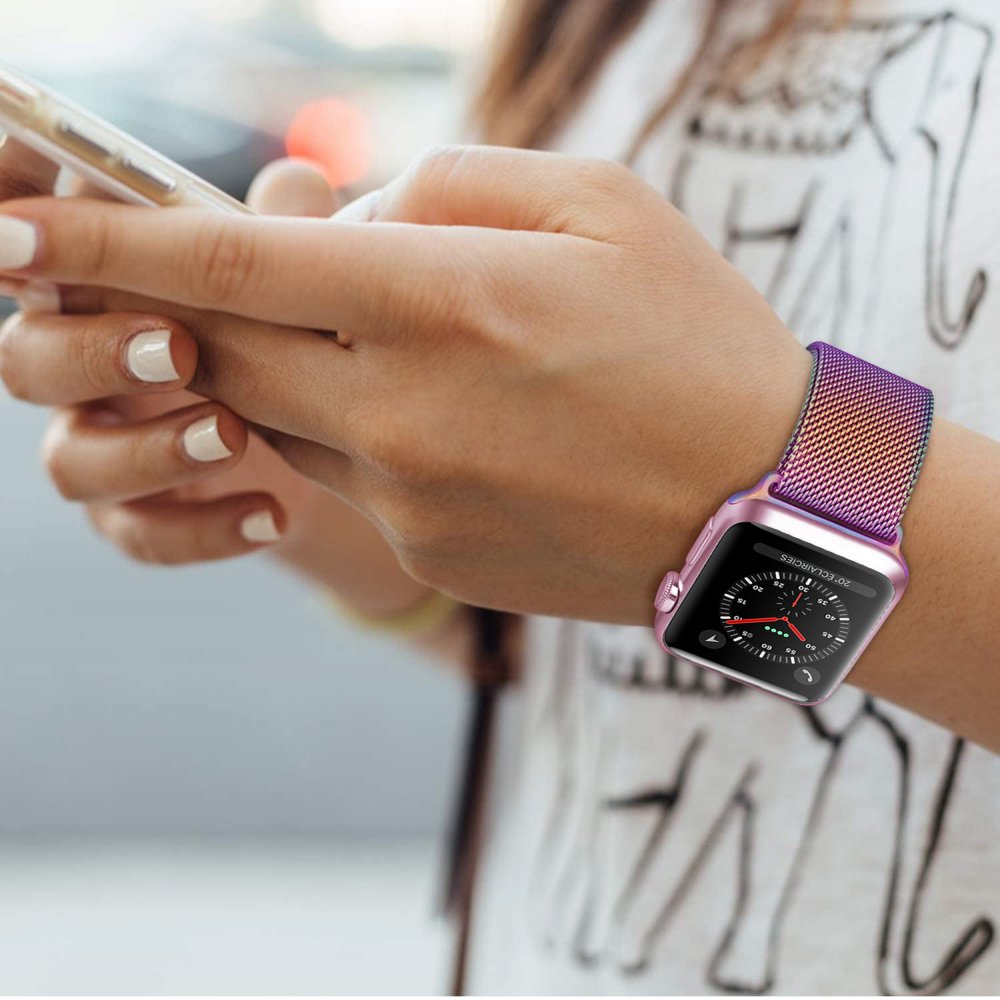 • Bracelet 38-40 mm compatible avec Apple Watch métalisé rose arc en ciel   (Vendu sans la montre)
