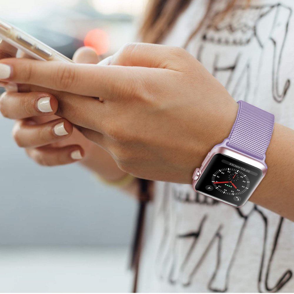 • > High Tech>Objets connectés>Accessoires Apple Watch>Bracelet 38-40 mm compatible avec Apple Watch métalisé parme (Vendu sans la montre)