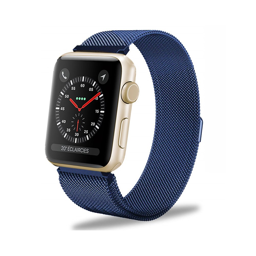 • > High Tech>Objets connectés>Accessoires Apple Watch>Bracelet 38-40 mm compatible avec Apple Watch métalisé bleu marine (Vendu sans la montre)