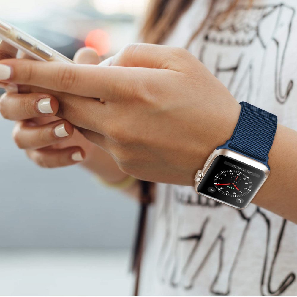 • Bracelet  38-40 mm compatible avec Apple Watch métalisé bleu marine (Vendu sans la montre)